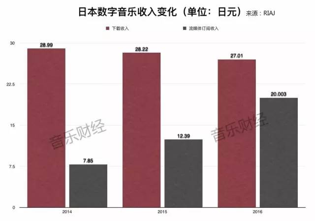 正当各音乐大国都因流媒体所带动的录制音乐收入上涨而感受到脱离困境的希望时,世界第二大录制音乐产业大国日本,却在2016年上半年出现了全球范围少有的录制音乐收入下滑情况,众人也对其全年收入纷纷做出了持续下滑的预测。但是,日本唱片业协会(RIAJ)近日发布的2016年录制音乐收入数据却打破了这个悲观的预测。