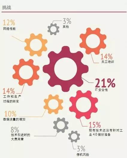 图1 .最近的一次调查表明,在工业4.0实施过程中德国企业仍然面临巨大挑战。最大的挑战是IT安全性