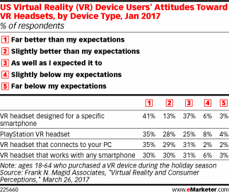 例如,在购买移动VR头显的受访者中,6/10表示VR设备比预期更好。