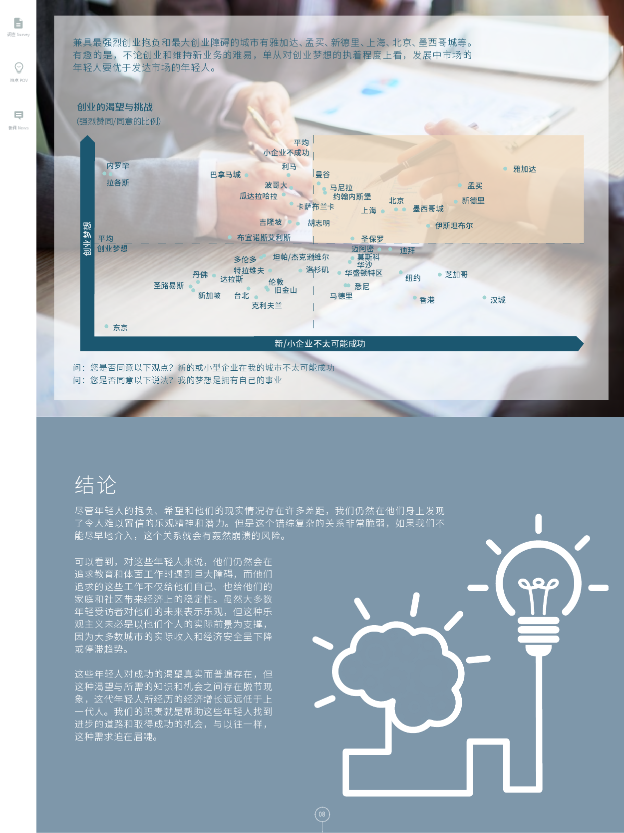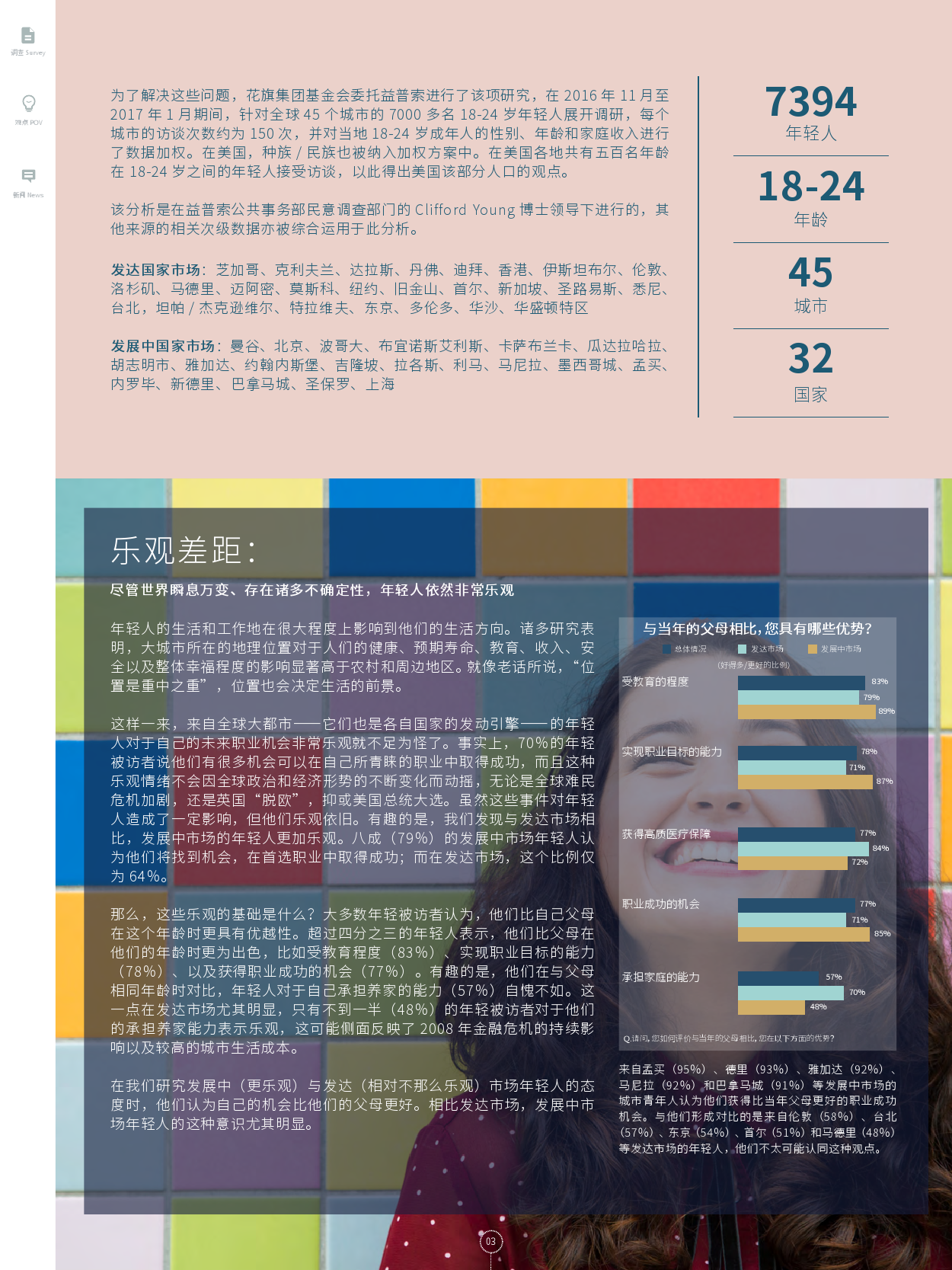 尽管年轻人的抱负、希望和他们的现实情况存在许多差距,我们仍然在他们身上发现了令人难以置信的乐观精神和潜力。但是这个错综复杂的关系非常脆弱,如果我们不能尽早地介入,这个关系就会有轰然崩溃的风险。