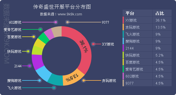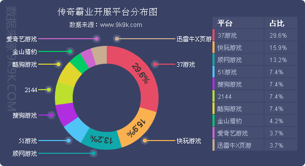 点评:《传奇盛世》本周开服同样保持稳定,新增分布占比平台爱奇艺游戏、602游戏、9377。