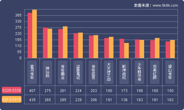 点评:本周《传奇霸业》开服稍有减少,但整体趋势仍保持稳定。其在37游戏开服占比减少9.5%。