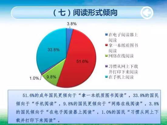据中国新闻出版研究院最新公布的第十四次全国国民阅读调查数据显示,2016年我国成年国民数字化阅读方式的接触率连续八年上升。