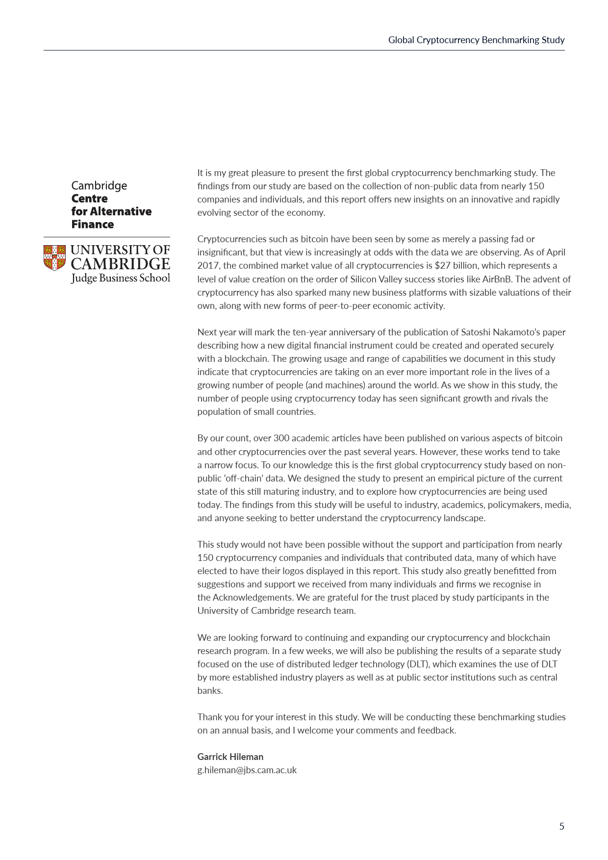 这份名为《全球数字加密货币基准研究》的报告是CCAF首个替代支付系统及数字资产相关研究。这项研究由Garrick Hileman博士领导。根据CCAF报道,研究旨在从“整体”审视全球数字加密货币市场,这也是该领域首个相关研究。CCAF研究员助理Michel Rauchs是此次报告的共同作者。