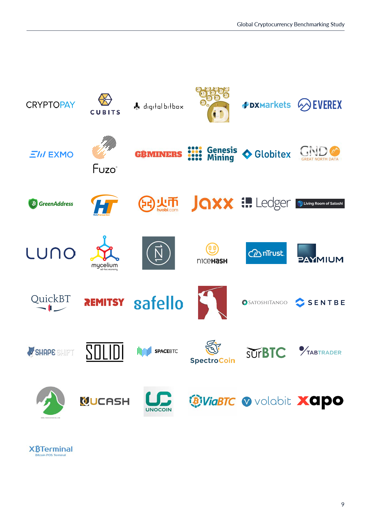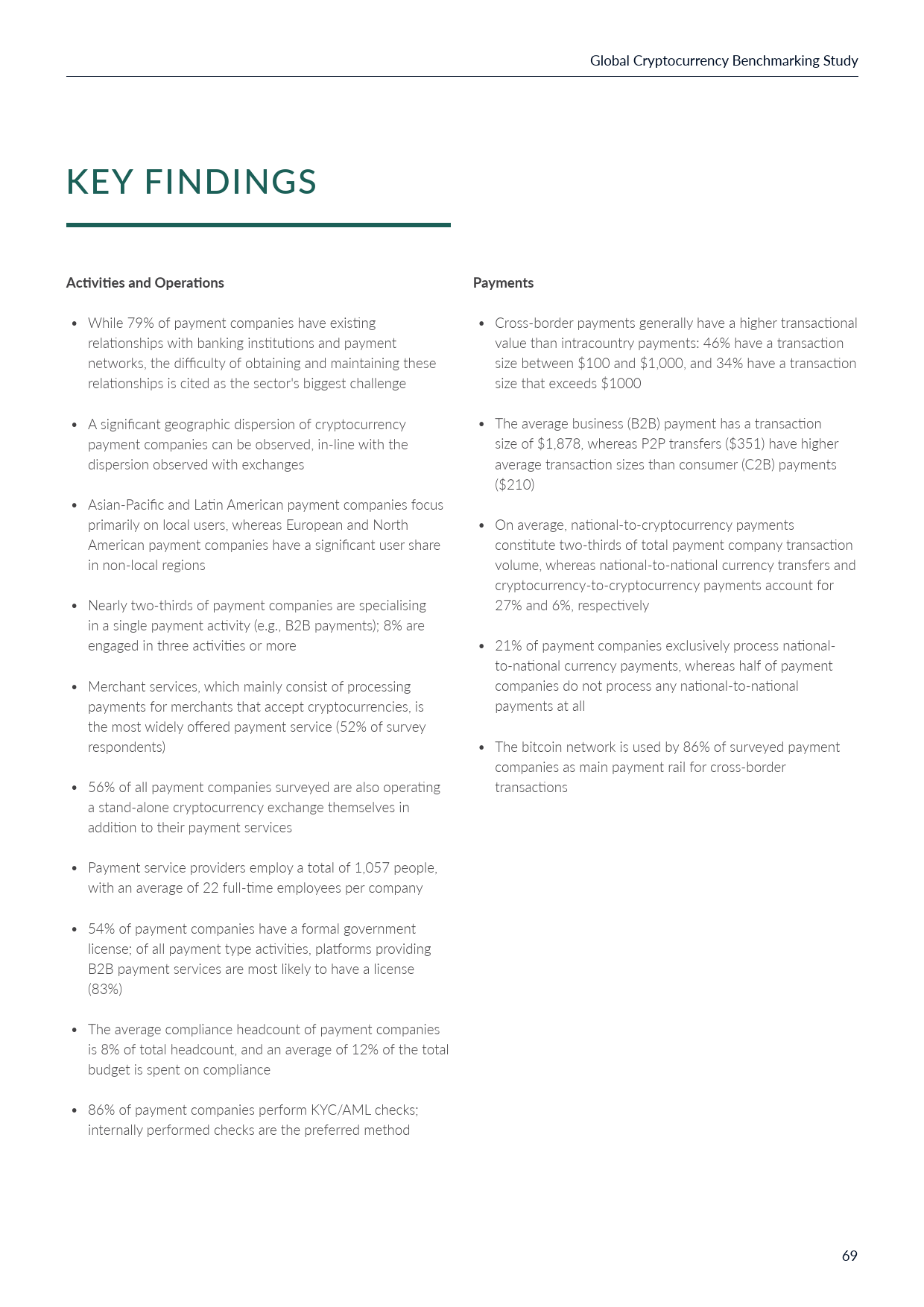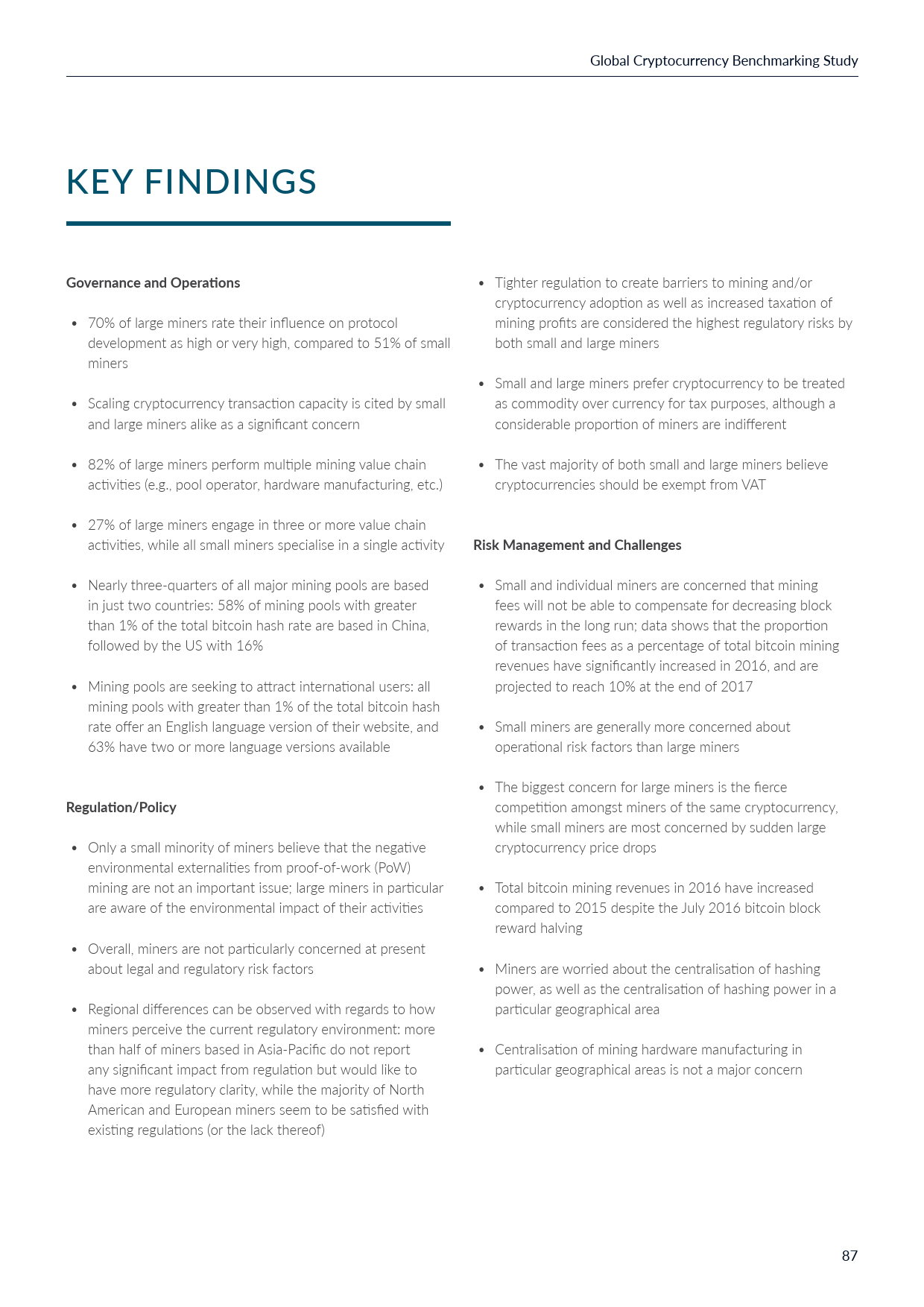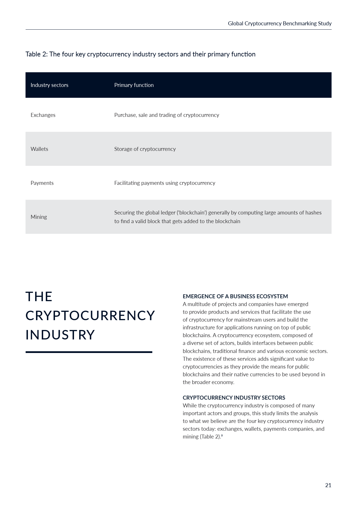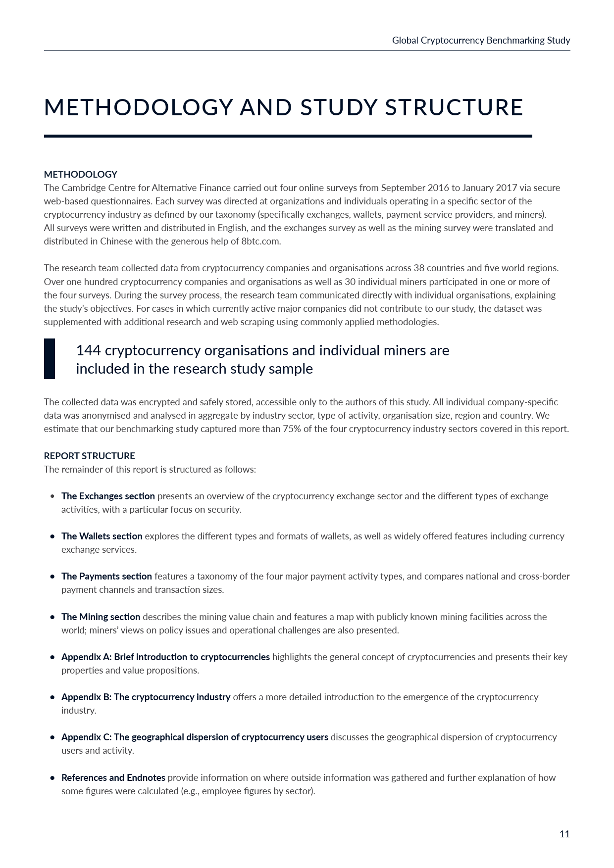 本次全球数字加密货币基准研究通过安全的网页问卷调查,收集了全球38个国家100多家数字加密货币公司的数据。CCAF 称调查覆盖了加密货币业约75%的数据。30多名数字加密货币挖掘工也接受了调查。调查主要针对四大关键领域:交易、钱包、挖掘、支付。