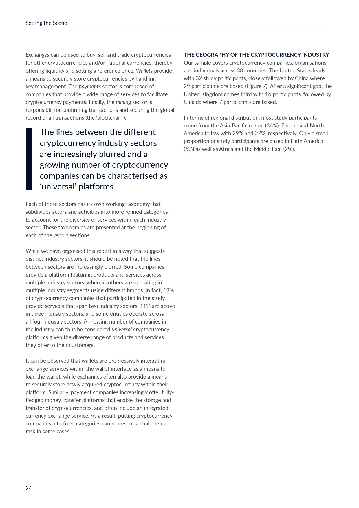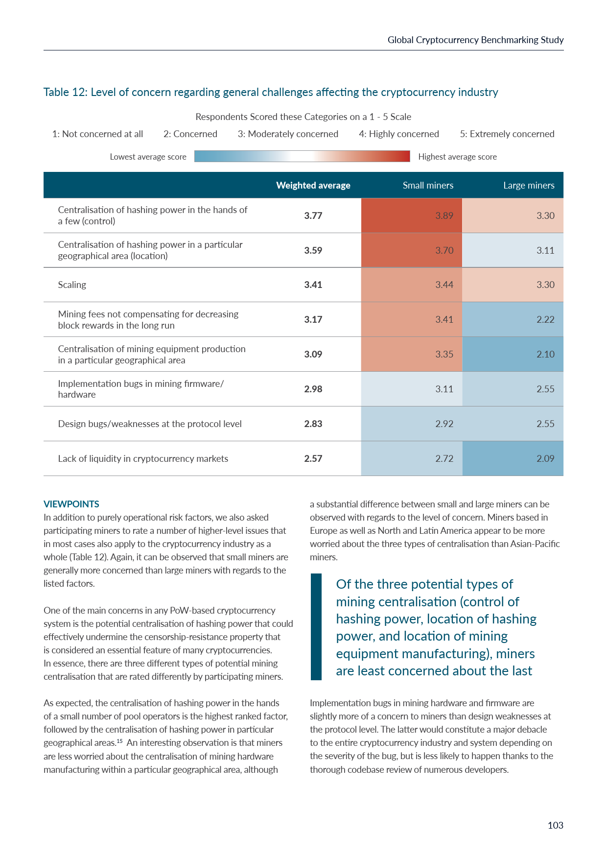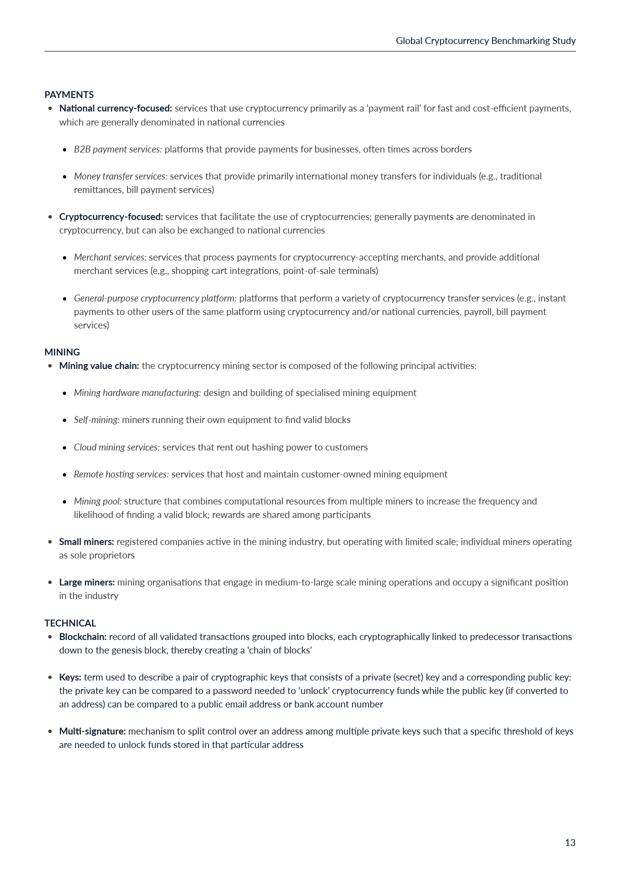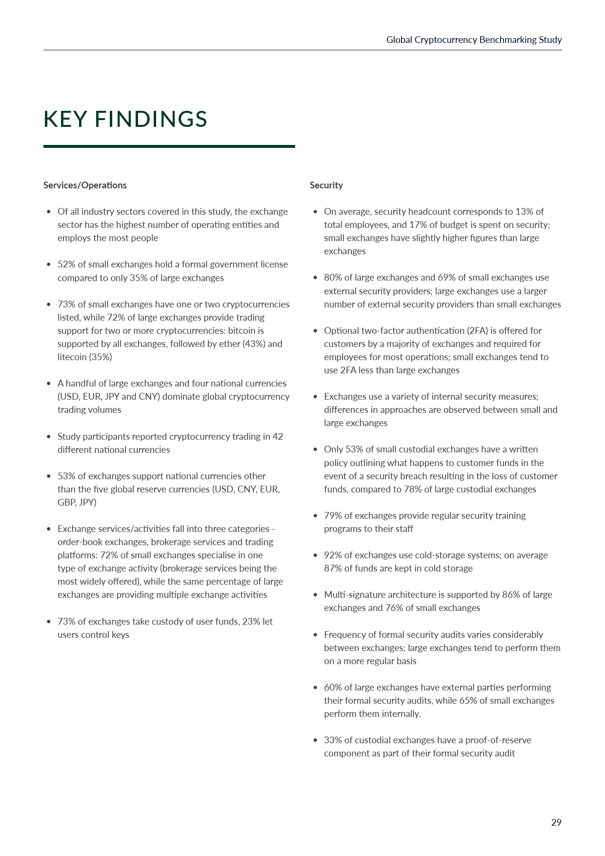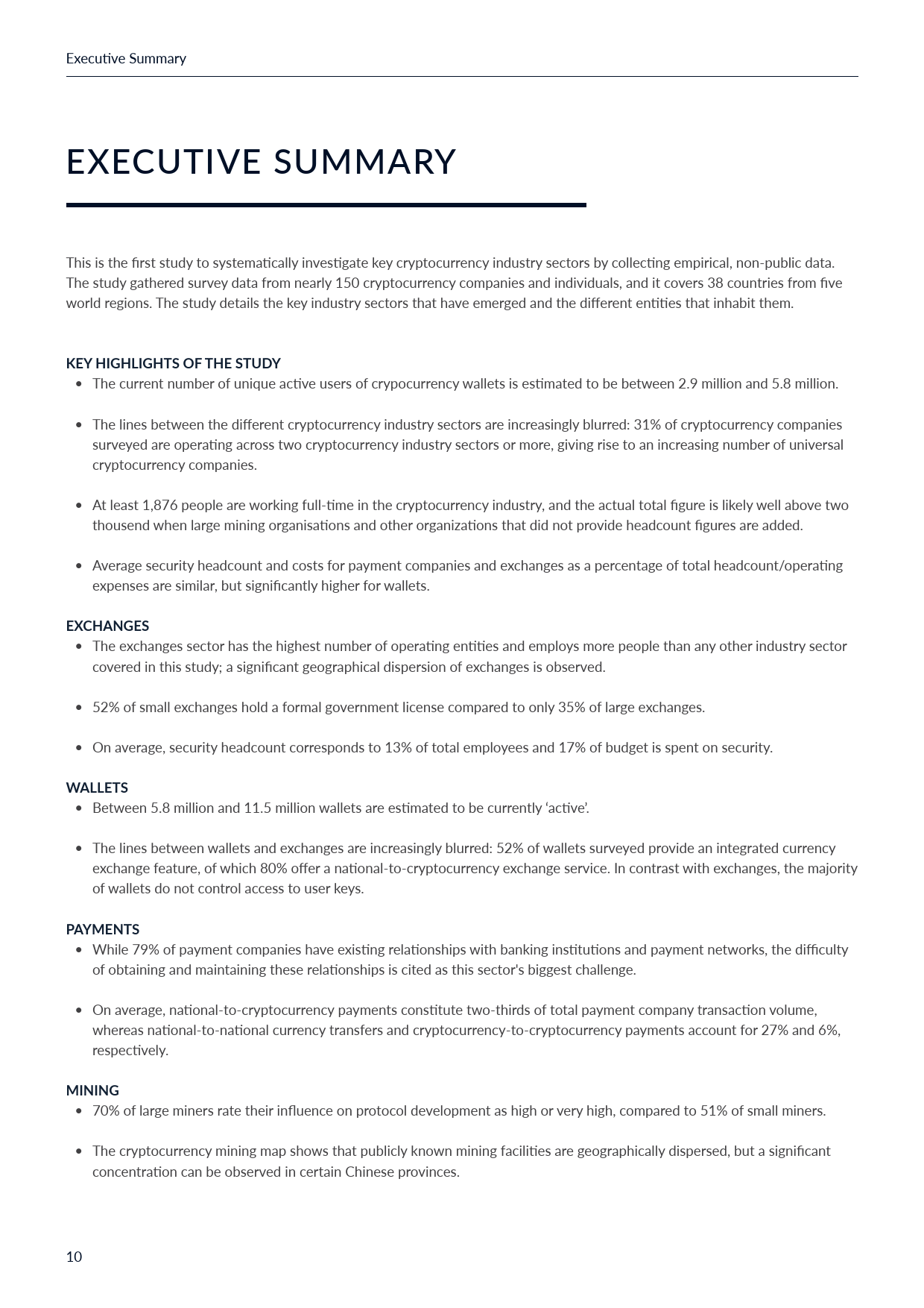 本次全球数字加密货币基准研究通过安全的网页问卷调查,收集了全球38个国家100多家数字加密货币公司的数据。CCAF 称调查覆盖了加密货币业约75%的数据。30多名数字加密货币挖掘工也接受了调查。调查主要针对四大关键领域:交易、钱包、挖掘、支付。