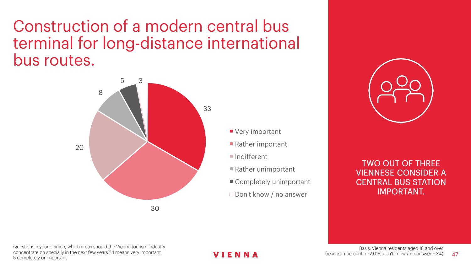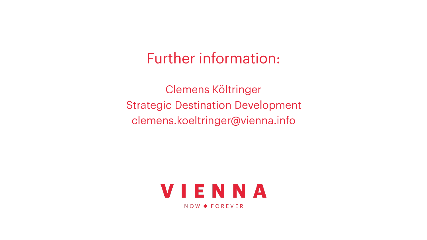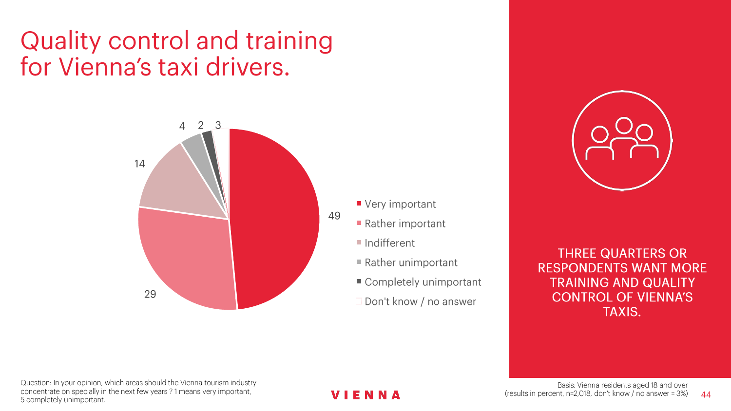 维也纳旅游局一直都在关注维也纳居民对旅游业的态度,以便能够迅速应对事态发展。维也纳旅游局现在还为一门关于城市旅游可持续发展的博士学位课程提供财务上的支持。克特勒对此解释说:“调查结果将会让维也纳和其他欧洲大都会制定具有创新精神的战略。”