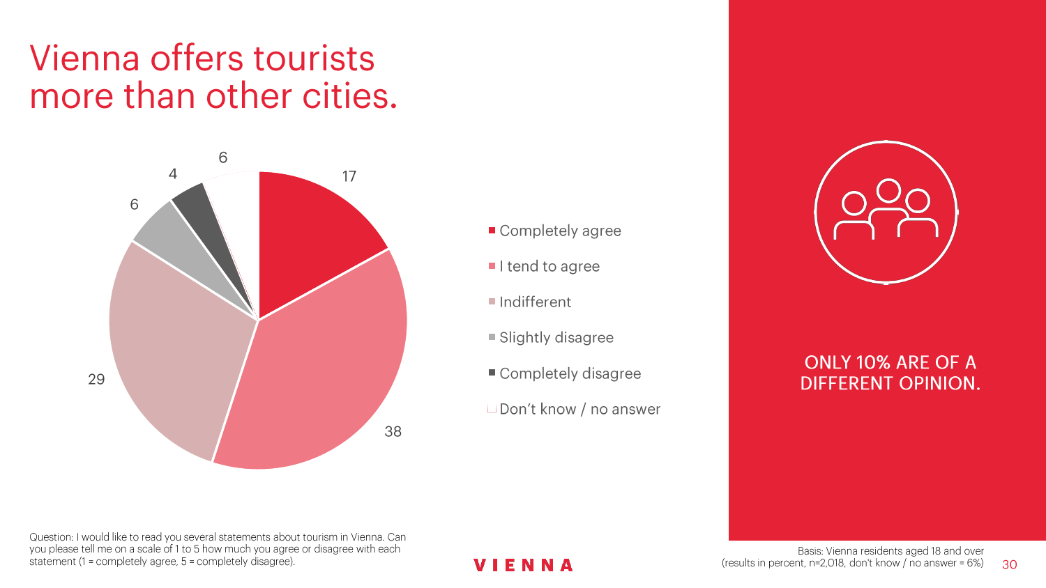 维也纳旅游局(Vienna Tourist Board)在维也纳居民中间进行了迄今范围最广的调查,研究维也纳居民对发展旅游业的态度,调查结果非常令人满意。