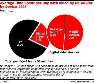 移动视频收视也在快速增长。2017年,英国成年人每天花27分钟收看移动视频,2012年这个指数还不到6分钟。