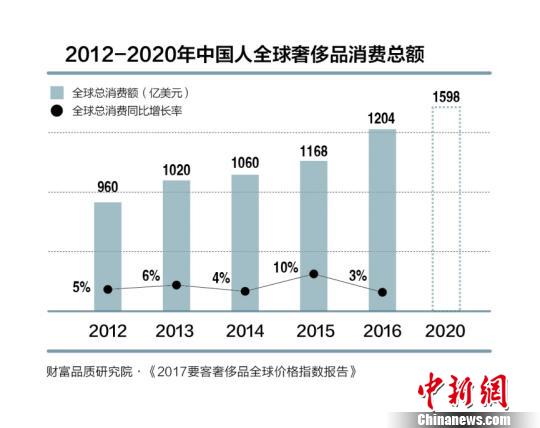 中国消费者是目前全球最大的奢侈品消费群体,根据财富品质研究院的统计,2016年中国人全球奢侈品消费额达到1204亿美元,其中境外消费奢侈品928亿美元(约6400亿元人民币),意味着在过去的一年中国人买走了全球近一半的奢侈品,同时连续5年超过70%的奢侈品购买发生在中国境外。至2020年,预计中国消费者境外奢侈品消费将达1216亿美元,年市场增长率保持7%。