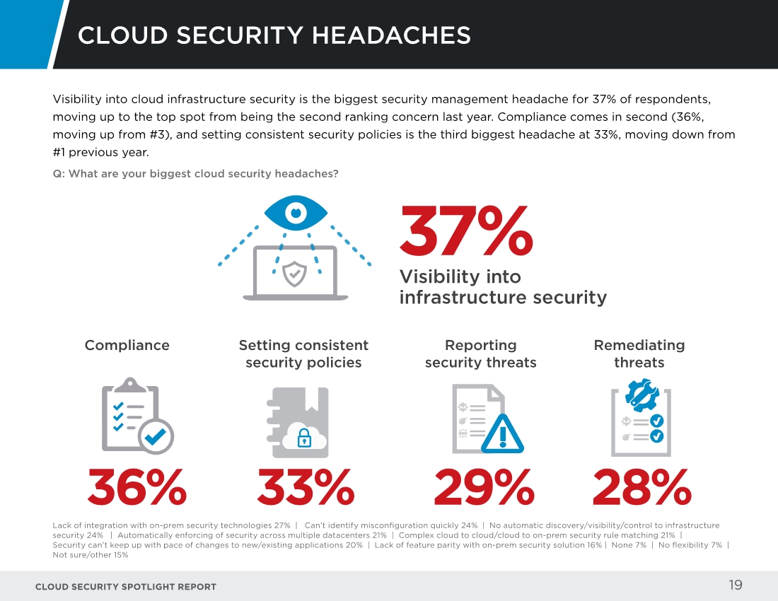 37%的受访者表示,云基础设施的透明度是安全管理的最大问题。这一点从2016年的第二位上升为第一。
