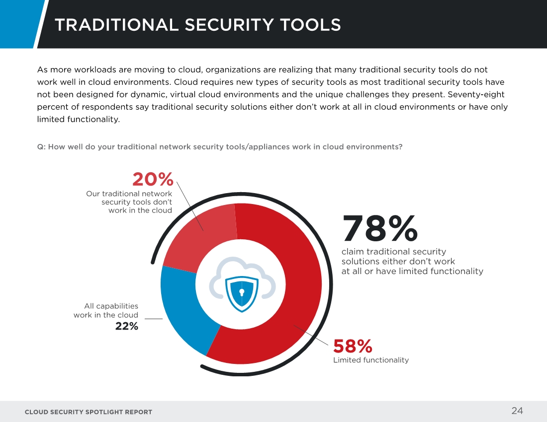 随着越来越多的企业和工作转移到云端,企业意识到传统安全工具并不适用于云计算(78%)。相反,我们需要并快速采用专门为云计算设计的安全管理和控制解决方案。