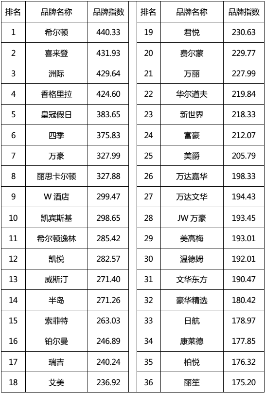 附:2017年4月国际高端酒店品牌指数完整榜单