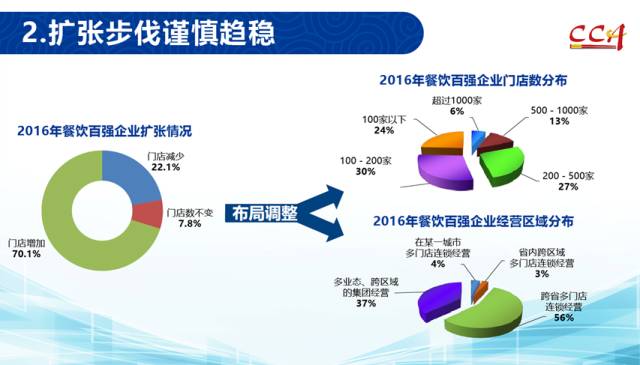 70.1%的百强企业增开门店,从2015年低迷状态中走出来的火锅、表现愈加抢眼的西餐和休闲餐饮都逐步稳定开辟新市场。