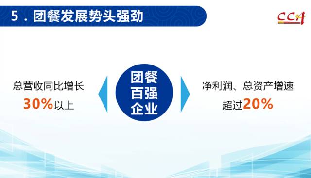 2016年,团餐整体继续呈现蓬勃发展态势,团餐百强企业总营业收入、净利润、总资产三项重要指标均已超过20%的高速增长。