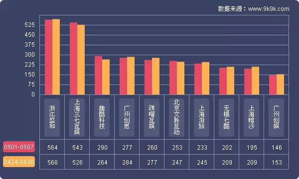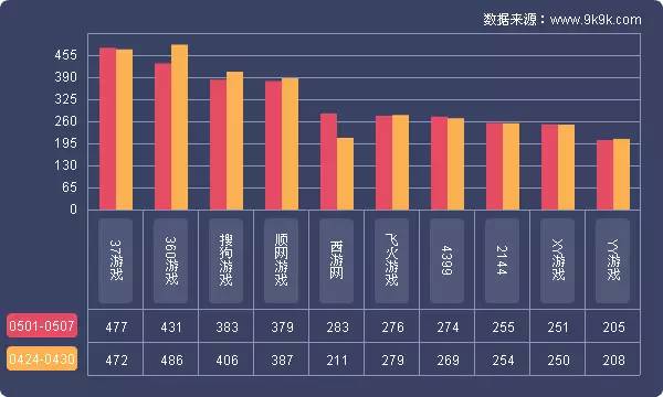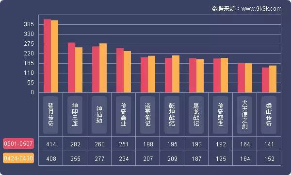 点评:本周《传奇霸业》开服涨幅7.3%,其在快玩游戏的开服频率有所上涨,开服占比11.4%。新增分布占比平台602游戏、XY游戏,其开服频率均为1服/天。