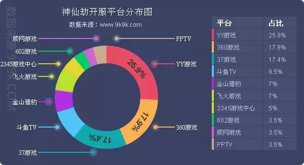 点评:《神仙劫》本周开服总数略有减少,但整体开服趋势未变。其在360游戏开服占比下降1.8%。另有多个平台保持1服/天的开服频率。新增分布占比平台PPTV。