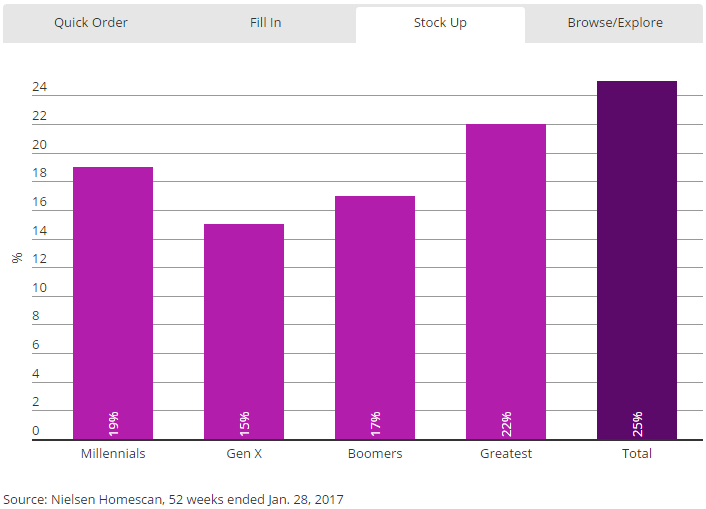随着消费者越来越转向网络购物,而了解谁在网上购物以及为什么是至关重要的。千禧一代更可能在网络购物时使用小额订单(65%),10件商品或更少;57%的婴儿潮一代在网络购物时使用小订单。