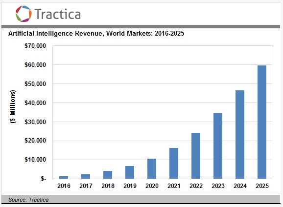 Tractica:预计2025年全球人工智能收入将增长至598亿美元 199IT原创编译 根据Tractica的最新预测,2025年全球人工智能收入将从去年的14亿美元增长至598亿美元。未来十年,人工智能在广告、金融、医疗保健、航空航天,以及消费者市场有着广泛的机遇。所有企业和机构、政府都在积极部署人工智能,进行数据分析等。 199IT.com原创编译自:Tractica 非授权请勿转载 更多阅读:Tractica:2025年全球医疗保健AI市场将达到193亿美元Tractica:2018年企业人工智能市场将达到236亿美元Tractica:2025年全球计算机视觉市场将达到262亿美元Tractica:预计2025年全球深度学习芯片市场将达到122亿美元Tractica:2025全球企业高性能计算市场将达到315亿美元Tractica:2025年汽车AI市场规模将达到265亿美元Tractica:自然语言处理在17个行业已经有44个独立用例Tractica:2025年全球人工智能软件收入达到888亿美元Tractica:2017年全球情绪分析软件收入1.23亿美元Tractica:2025年全球人工智能市场将达到368亿美元Tractica:2025年AI软件全球收入将达到1260亿美元Tractica:2018年全球AI软件市场价值为81亿美元Tractica:2025亚太地区AI市场将达到1360亿美元Tractica:2025年全球深度学习软件市场将达到672亿美元Tractica:2025年基于AI的汽车软件市场将达到46亿美元