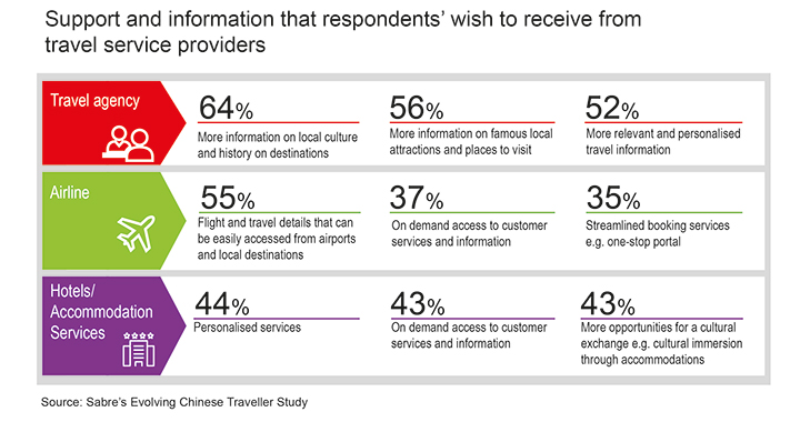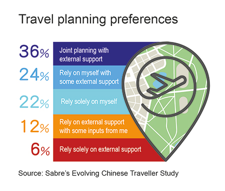 然而,对旅行计划的更多控制并不会取代旅行服务提供者和代理所给予的外部支持和旅行指导。事实上,很多中国旅行者(占比78%)仍然欢迎和重视来自朋友、亲戚和旅行服务提供者的支持和建议。
