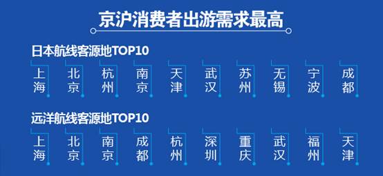 途牛旅游网监测数据显示,过去一年,日本航线客源地前十强分别为上海、北京、杭州、南京、天津、武汉、苏州、无锡、宁波、成都;远洋航线客源地前十强分别为上海、北京、南京、成都、杭州、深圳、重庆、武汉、福州、天津。从这两份榜单可以看出,上海、北京两地消费者不仅是休闲度假游的绝对拥趸,也对邮轮游情有独钟。