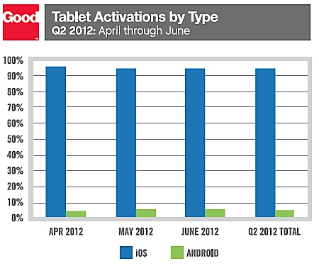 从上图可以明显看出,iOS平板电脑在企业市场的激活量最近这三个月一直处在90%以上。