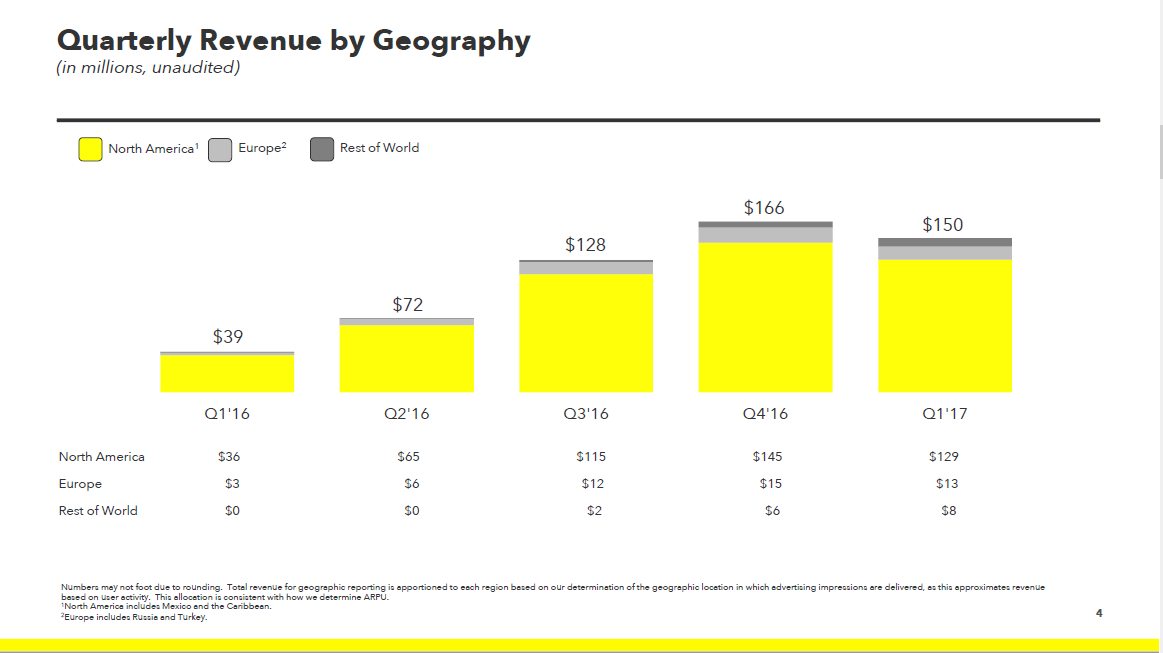 欧美市场目前也是Snap的主要收入来源,根据公司的财报,1季度,美国市场的营收占比为86%,达到1.29亿美元,欧洲和其他市场对营收的贡献分别为9%和5%。