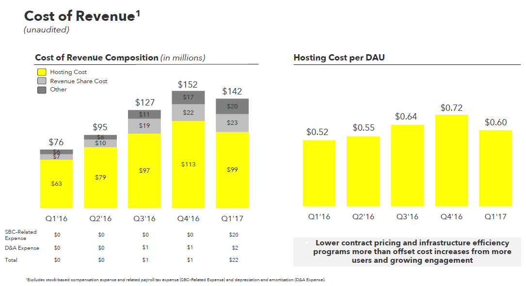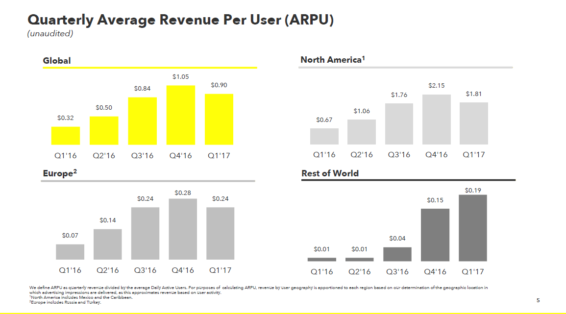 由于Snap的视频业务是烧带宽的业务,为了服务用户,Snap在1季度平均在每个用户上所花费的成本为0.6美元。