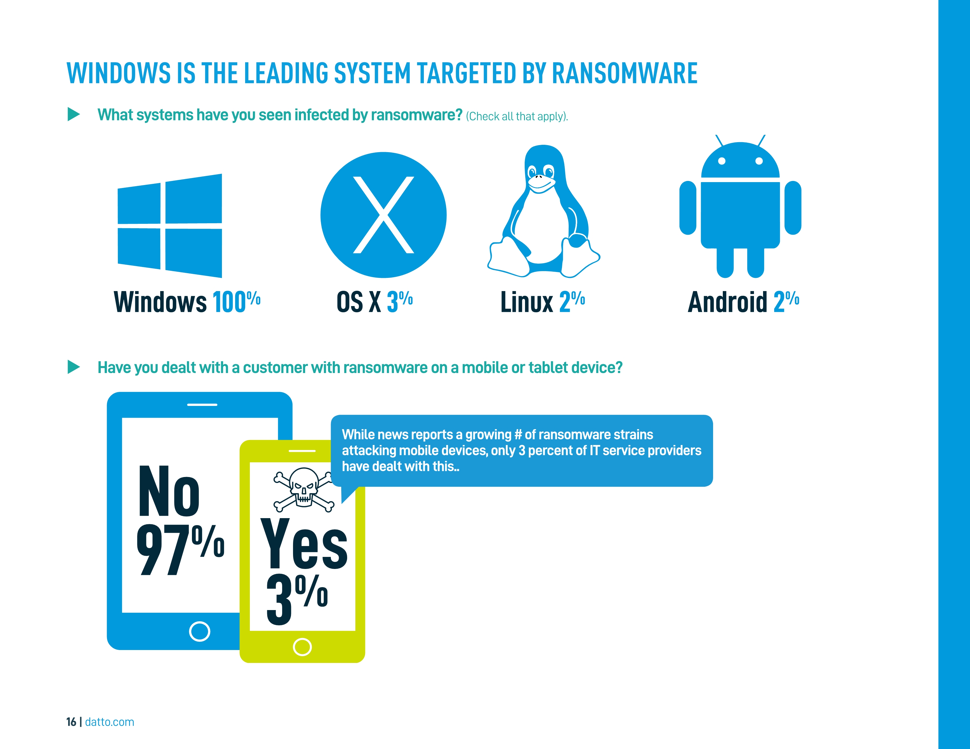 只有3%的IT服务提供商报告,勒索病毒感染移动设备。