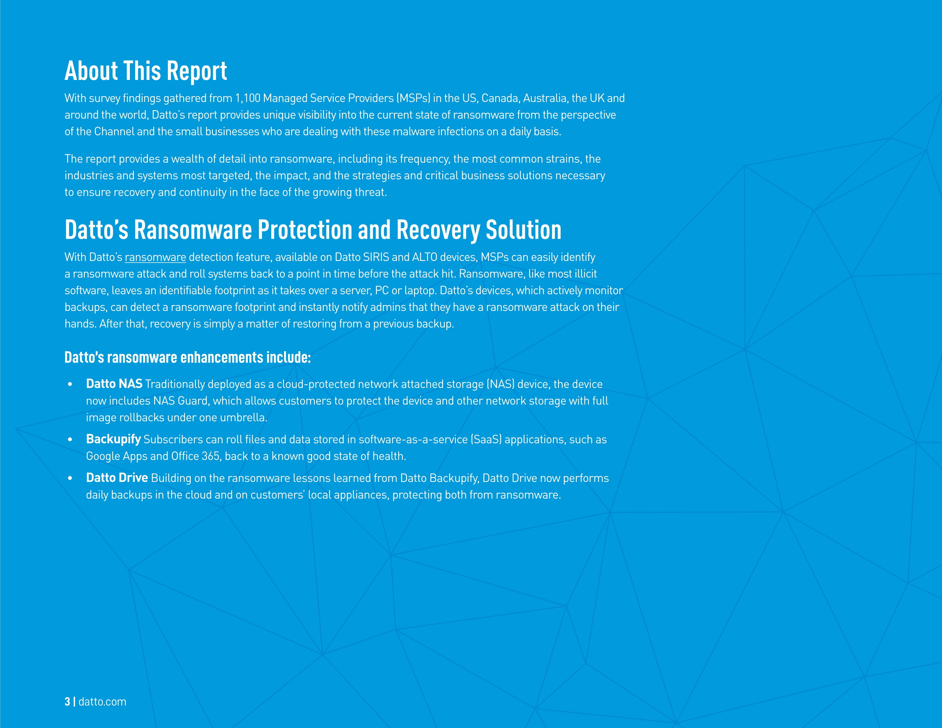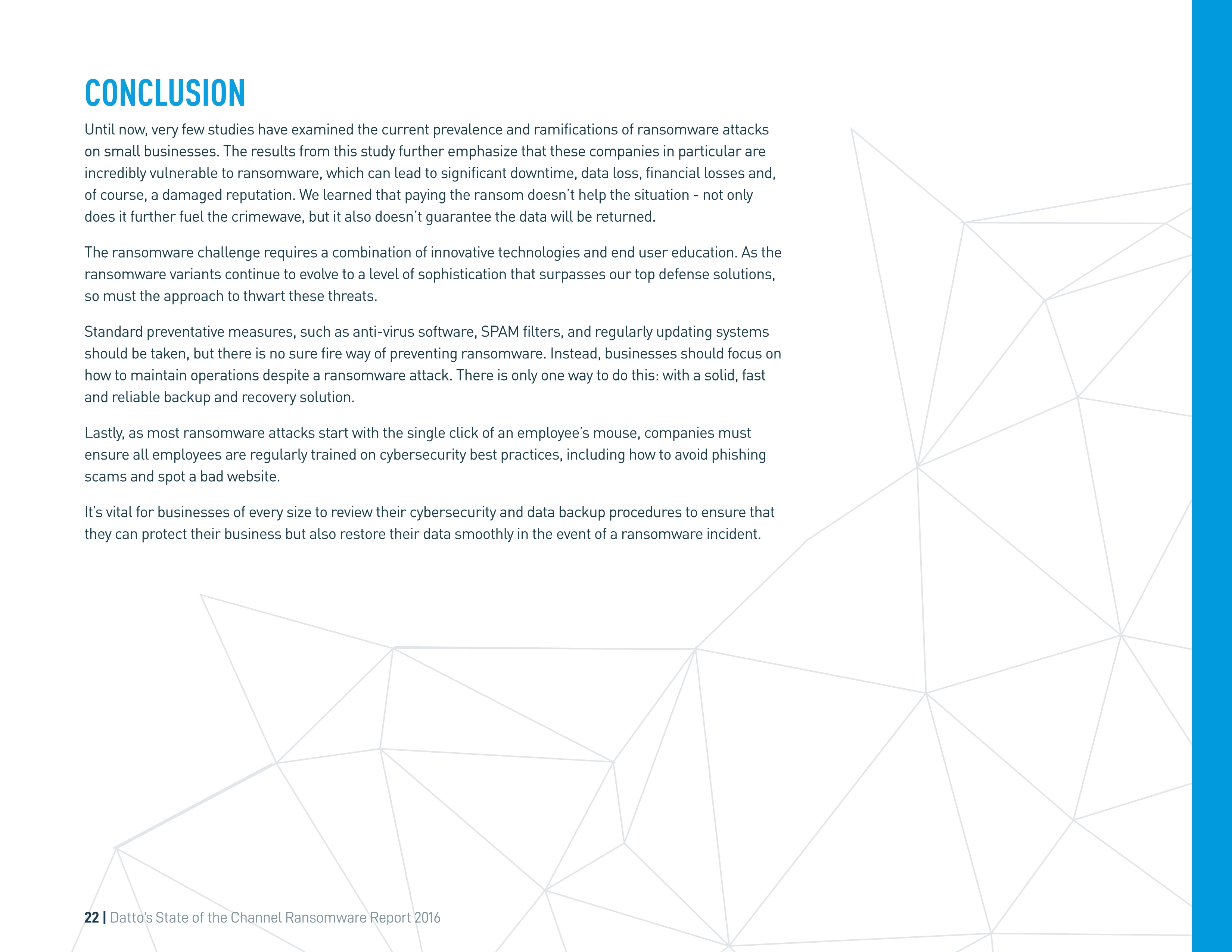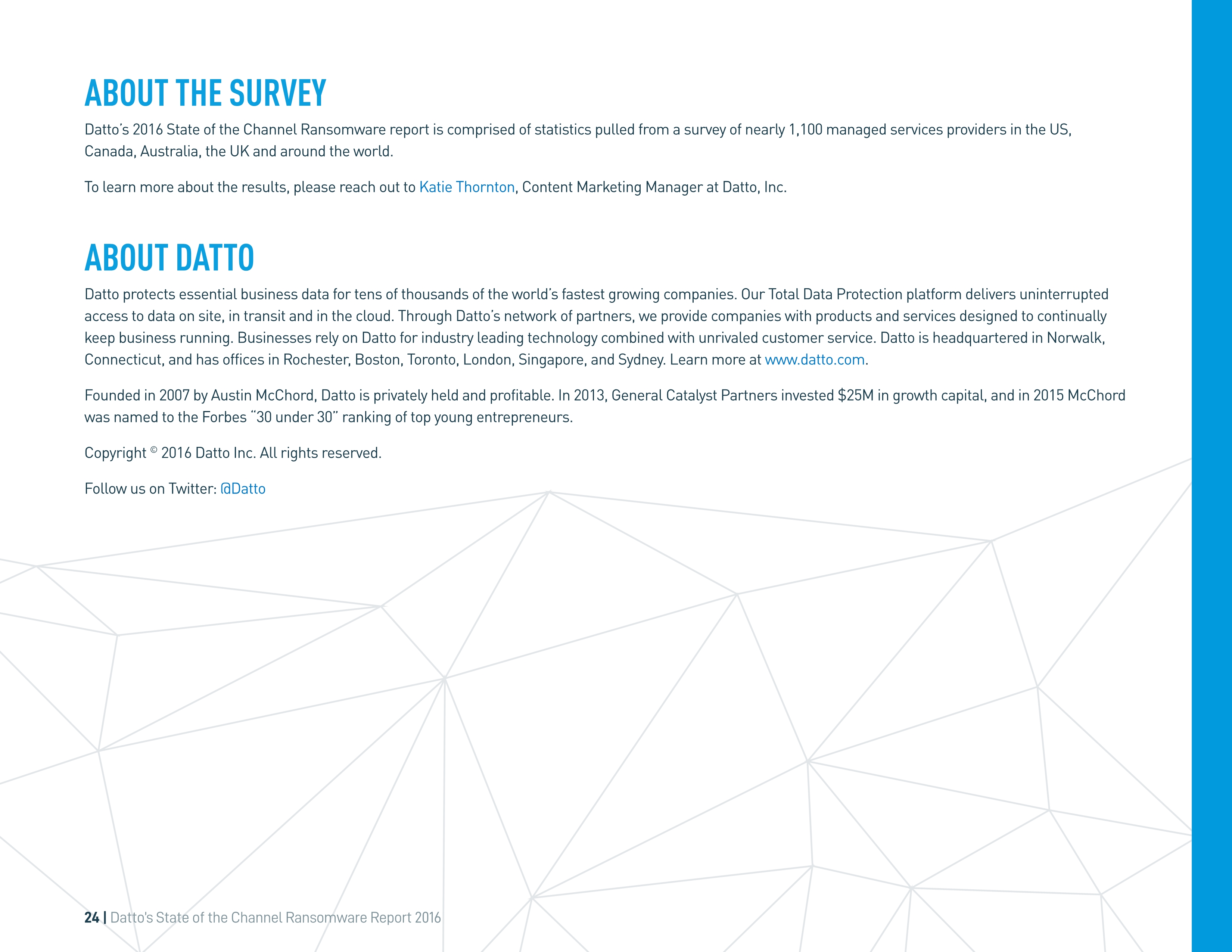 Datto发布了“2016年勒索病毒报告”,报告要点包括: