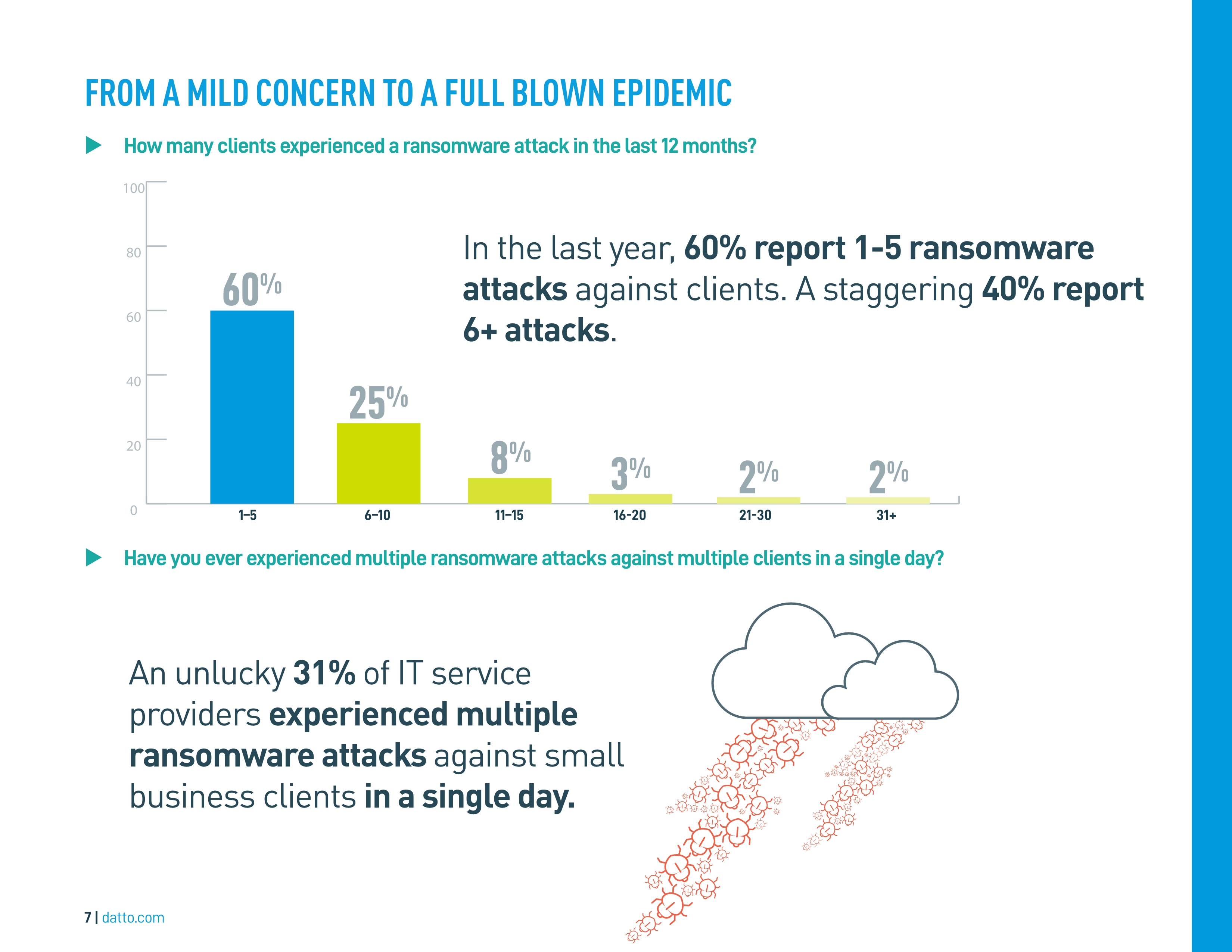 约31%的IT服务提供商在一天内就经历过多次勒索病毒。