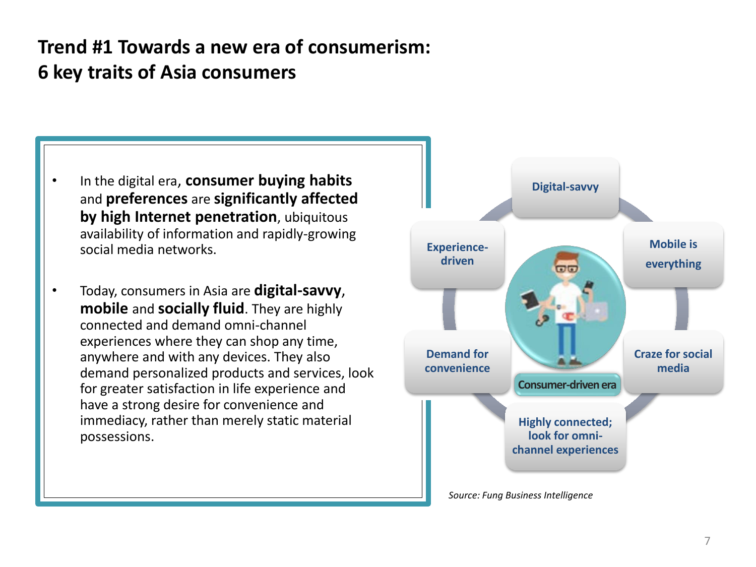 冯氏集团利丰研究中心最新发布报告显示,时至今日,推动商业决策的不再是企业,而是消费者。亚洲的消费市场正在并将持续受中产阶级的喜好所影响,尤其是具有影响力的年轻千禧一代消费者。