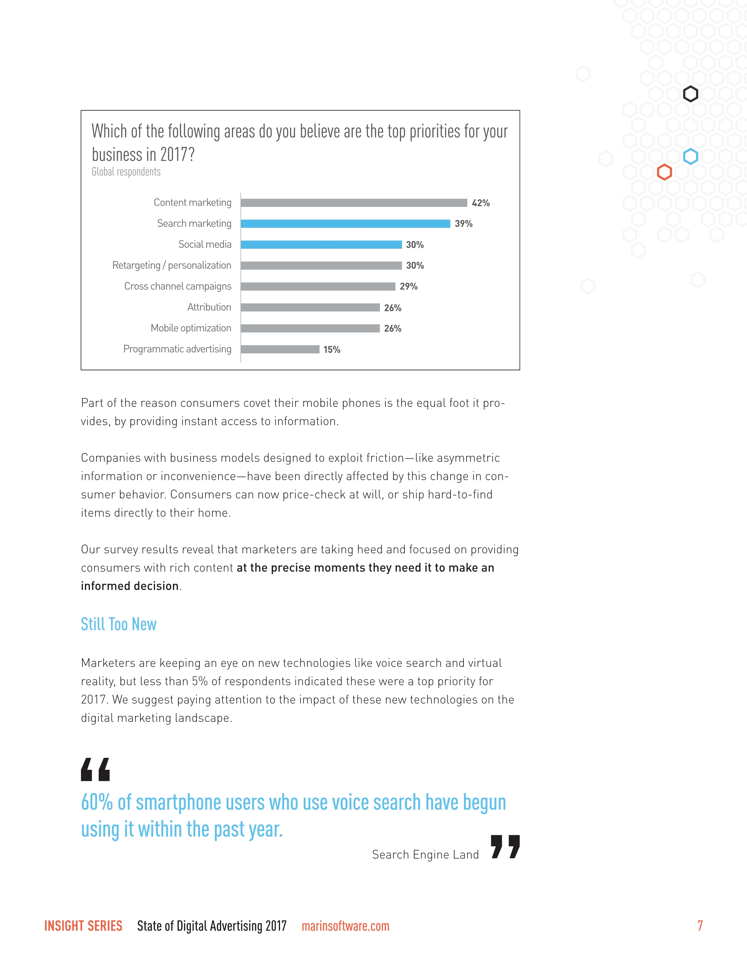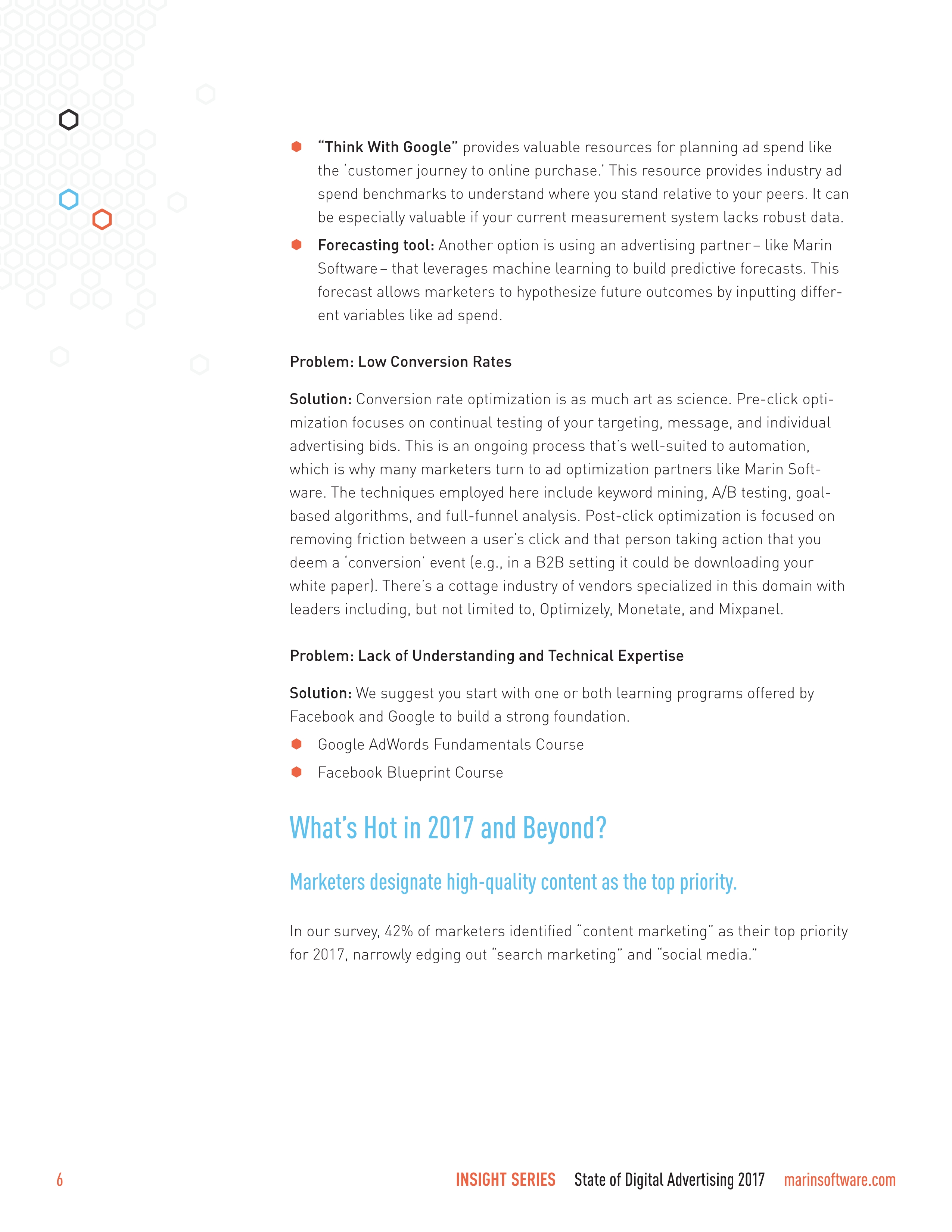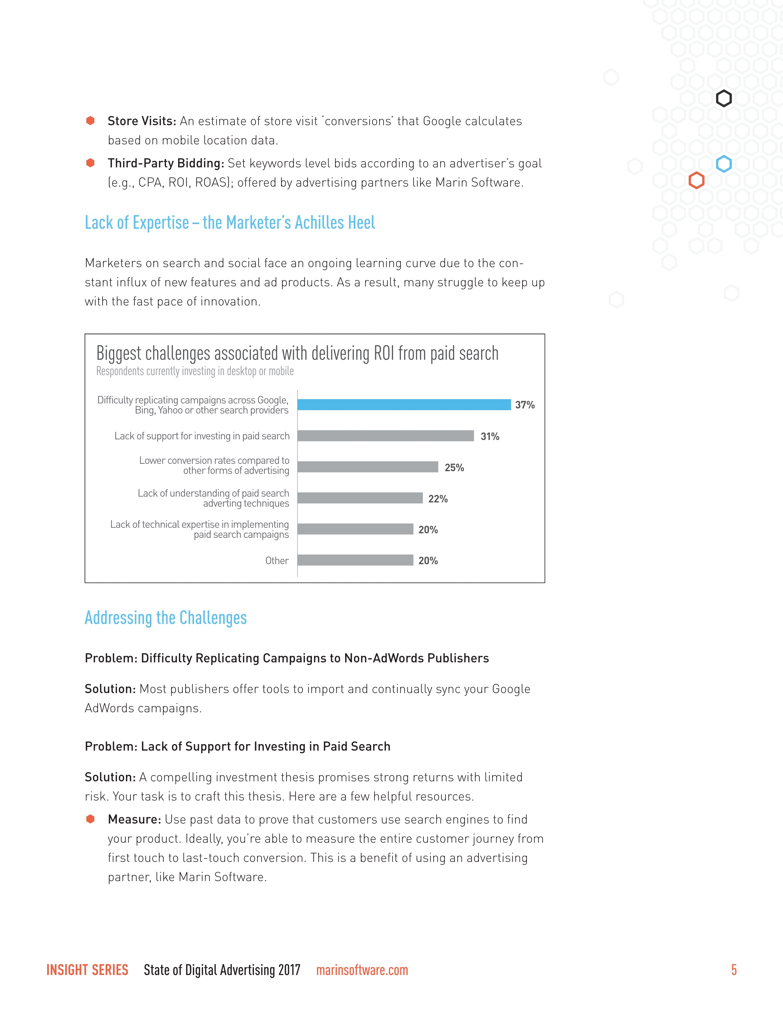 缺少专业知识是营销人员的最大掣肘,尤其是搜索和社交营销人员面临着不断更新的功能和广告产品。