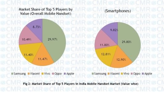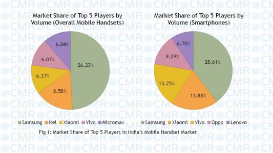 根据CMR的“2017年第一季度印度手机市场回顾”,第一季度印度手机行业收入3462.95印度卢比,和前一季度比下降8%。