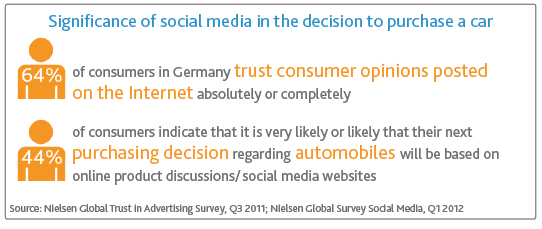 社会化媒体影响用户汽车购买决策:64%的消费者相信网络上的用户观点;44%的消费者认为他们未来的购车决策可能会基于用户的网络评论
