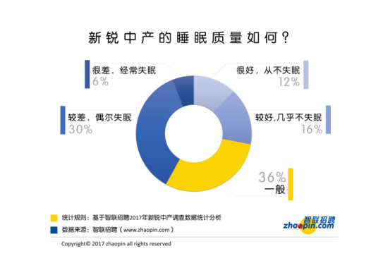 本次调研数据显示,有72%的新锐中产睡眠质量一般或差强人意,甚至有超过三分之一的人会出现轻微甚至严重的失眠现象。