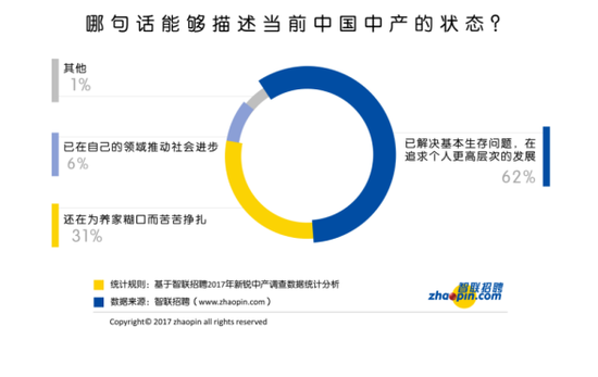 即使中产拥有各种各样的焦虑,但他们对自己的现状,对自己所向往的目标却又有清晰的认知。有62%的新锐中产认为,他们已解决基本生存问题,在追求个人更高层次的发展。同时也有31%的新锐中产认为他们还在为养家糊口而苦苦挣扎。