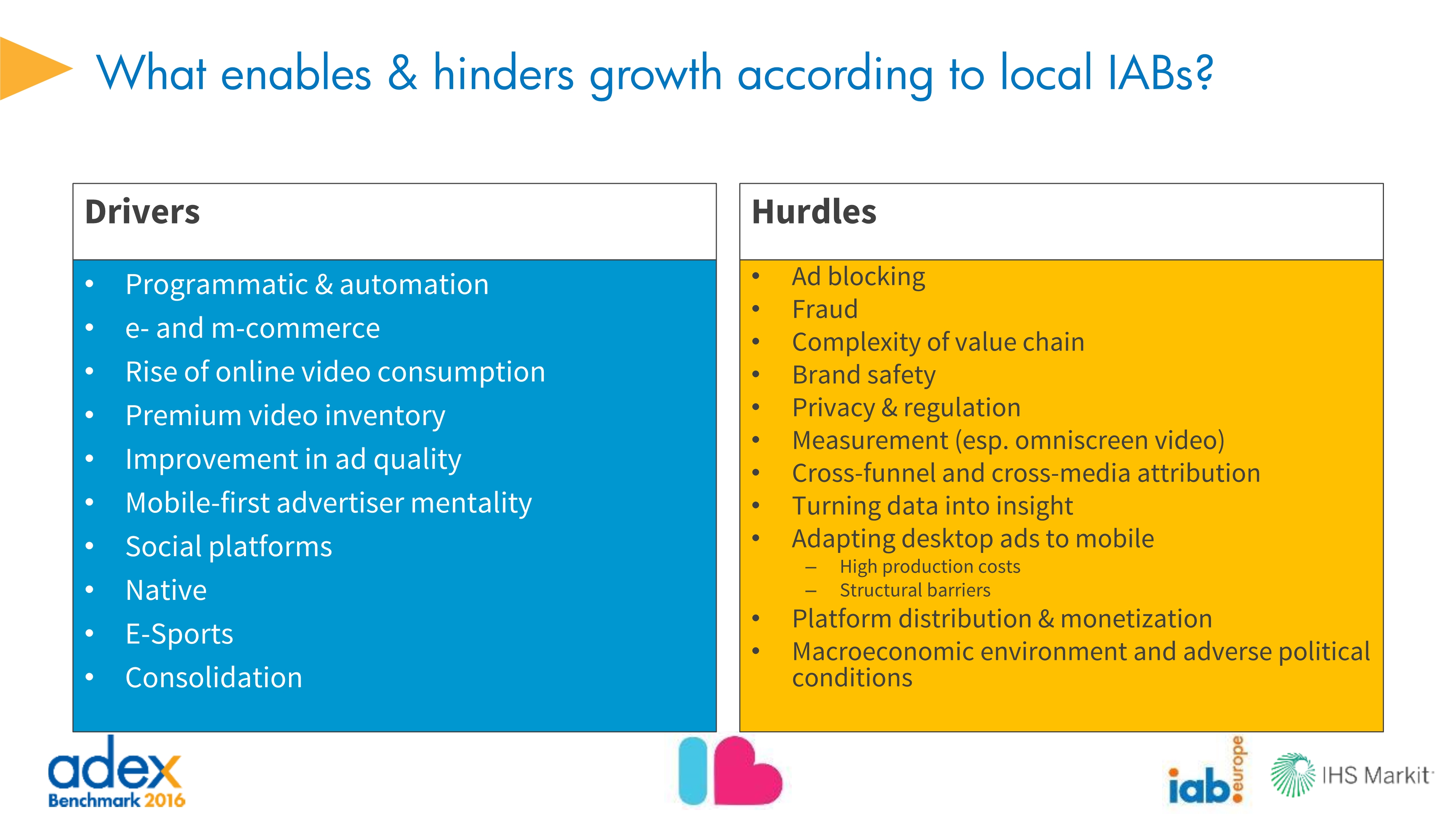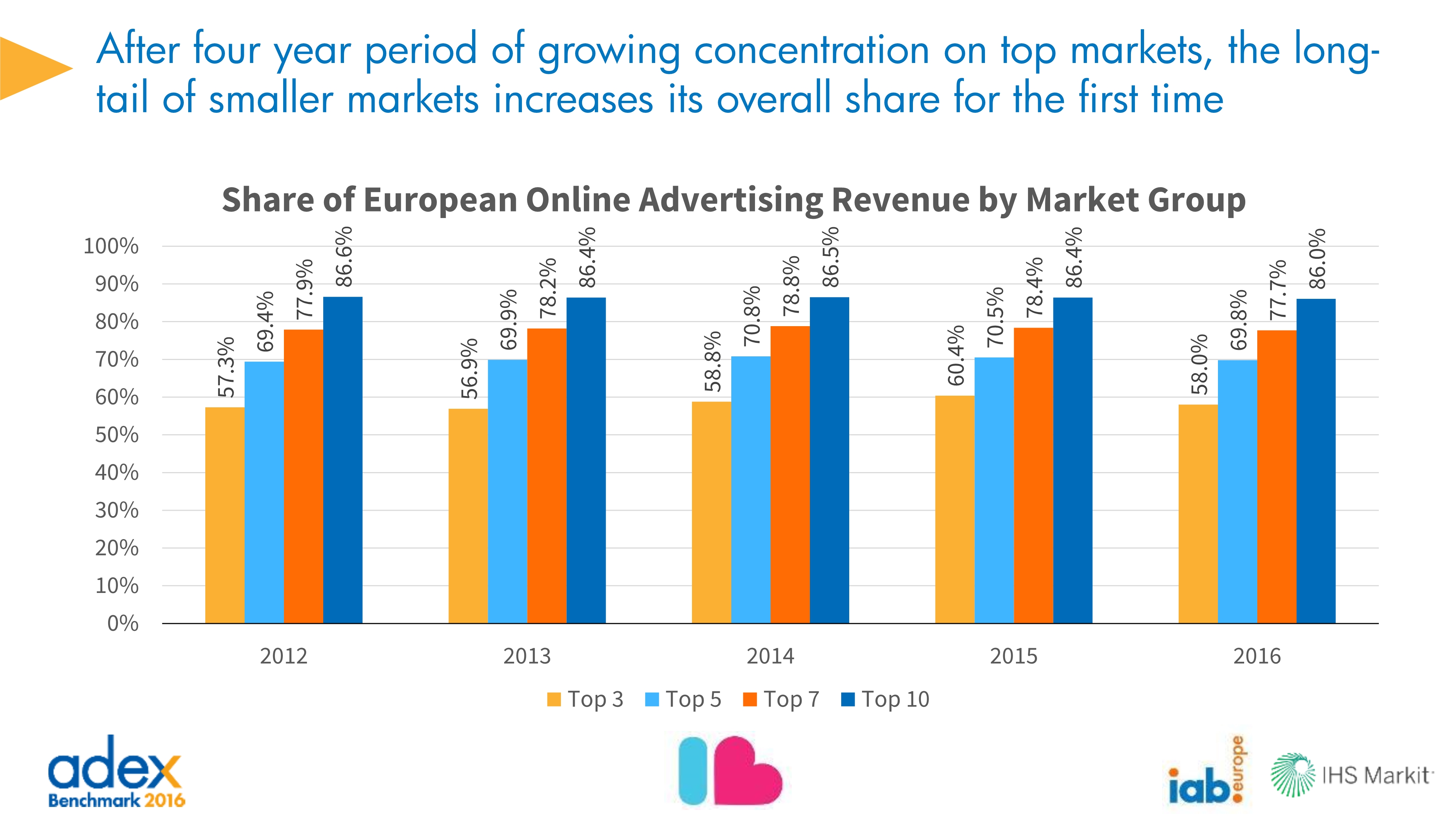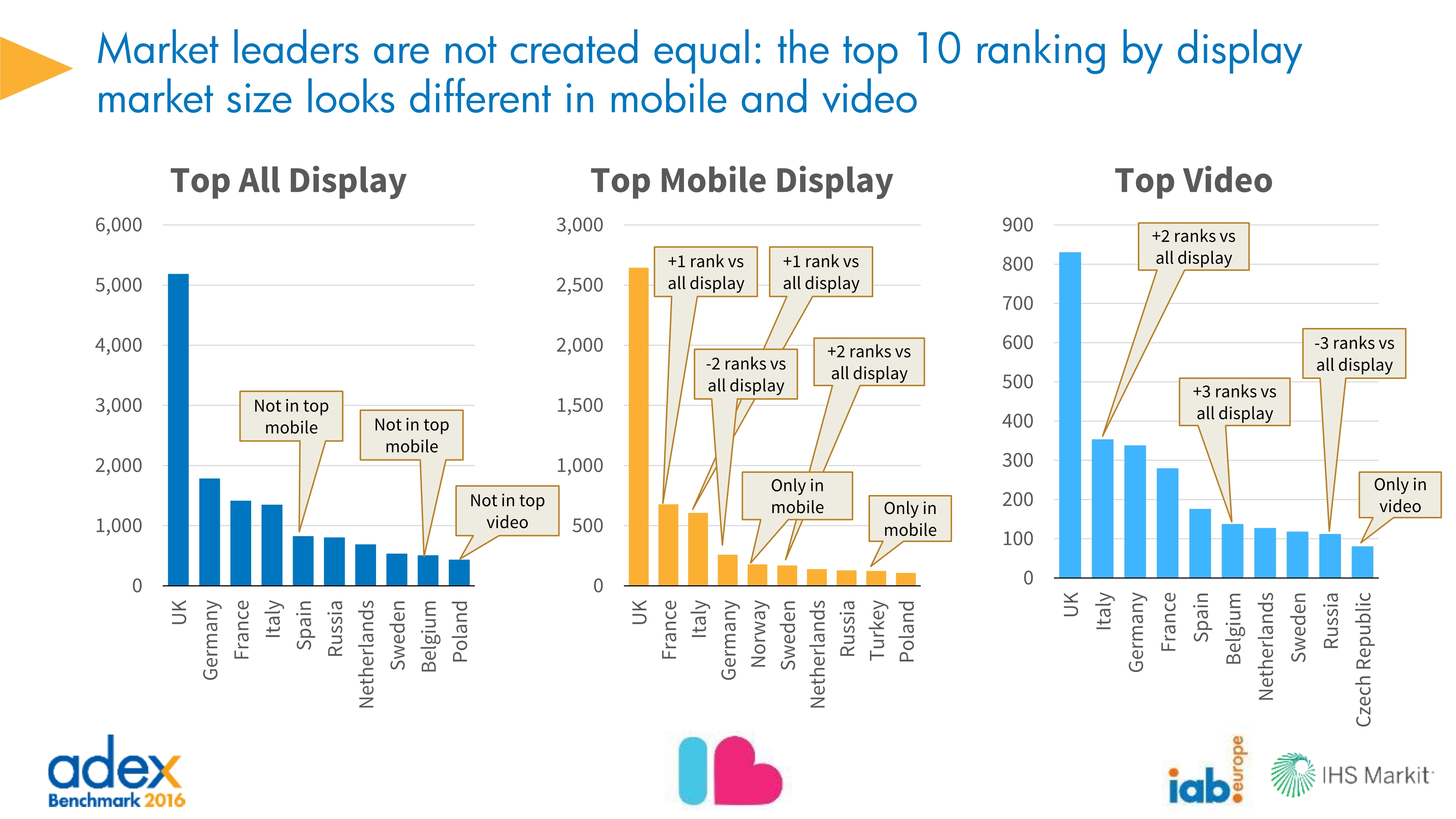 2016年,移动占欧洲网络广告份额增长至33%。塞尔维亚移动广告支出增长327%,法国移动广告支出增长107.7%。