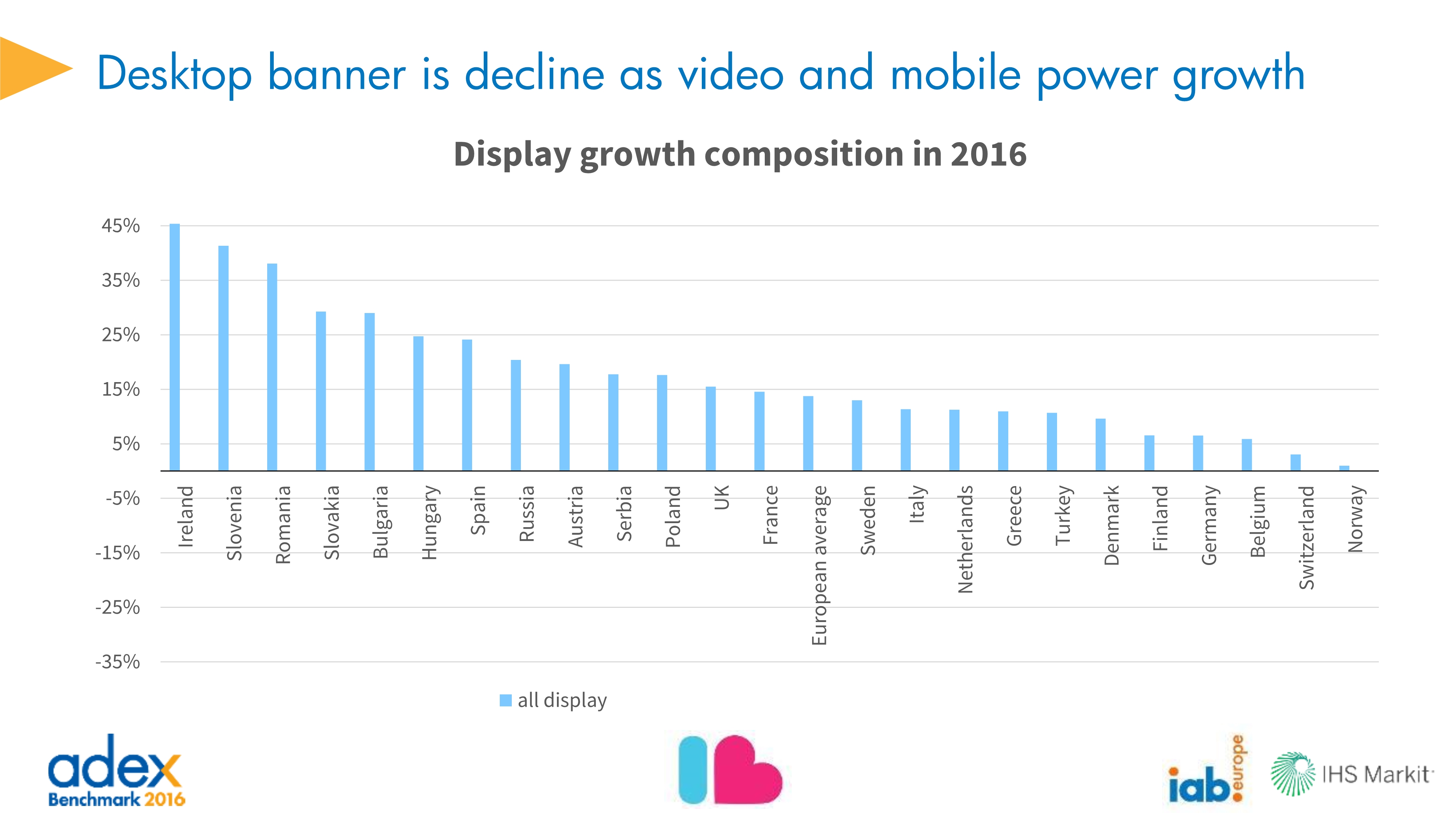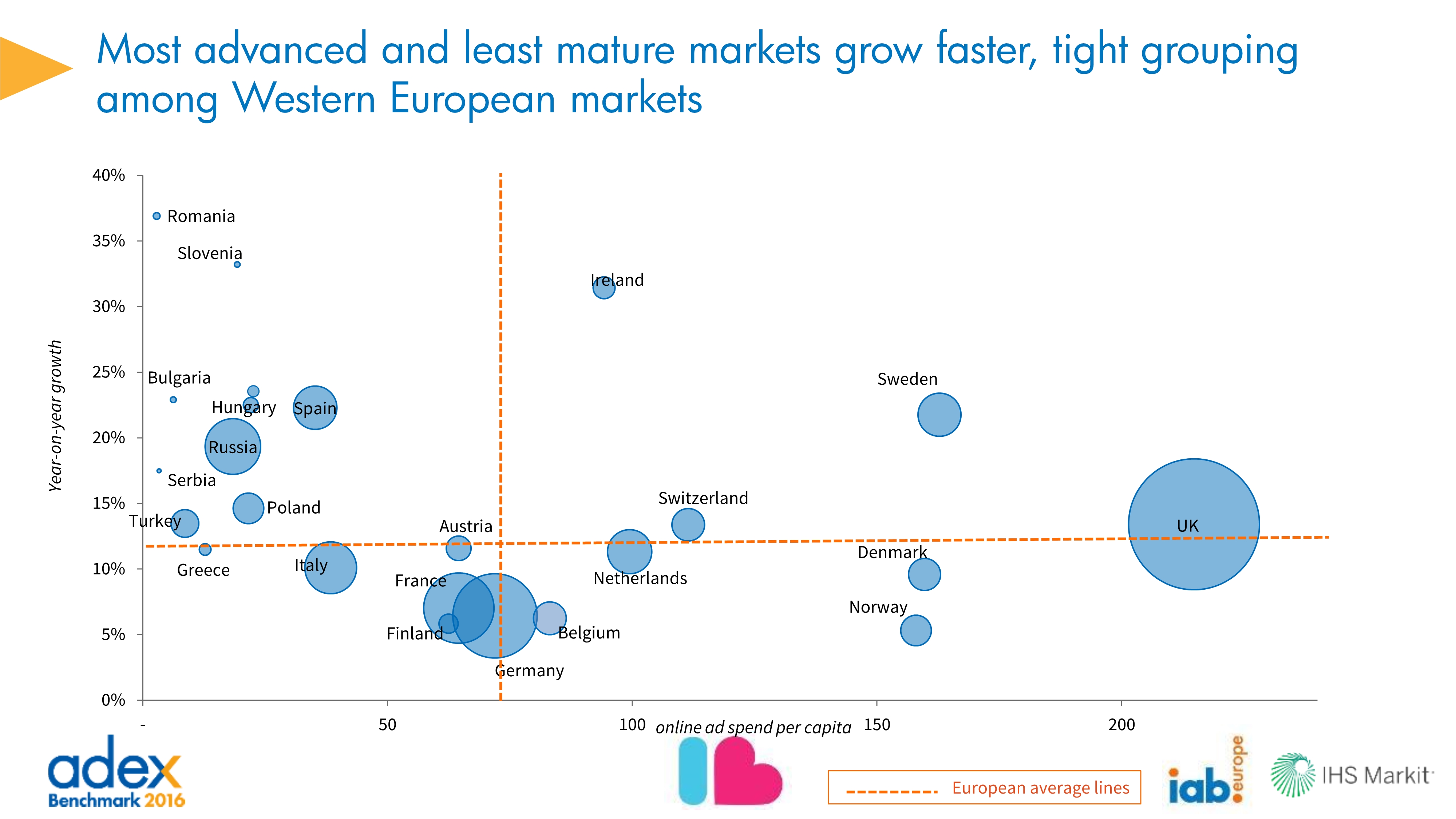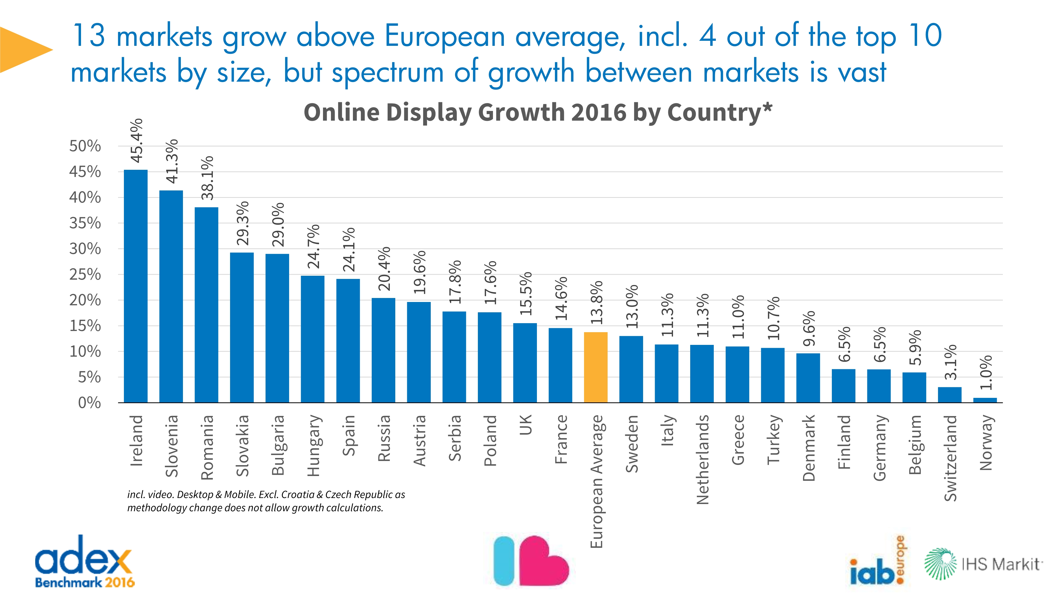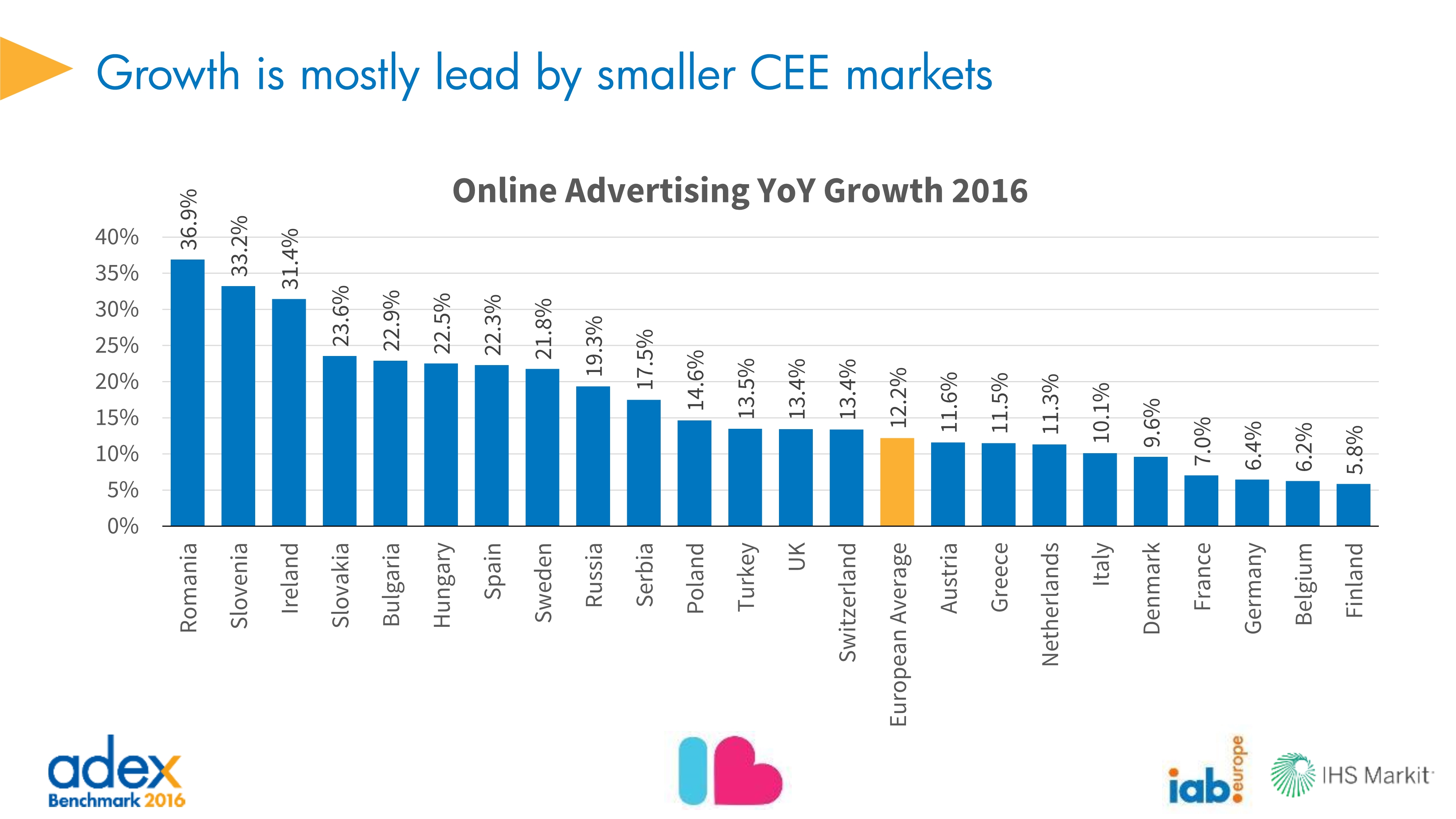 2016年,罗马尼亚、斯洛文尼亚和爱尔兰网络广告支出增长都超过30%。