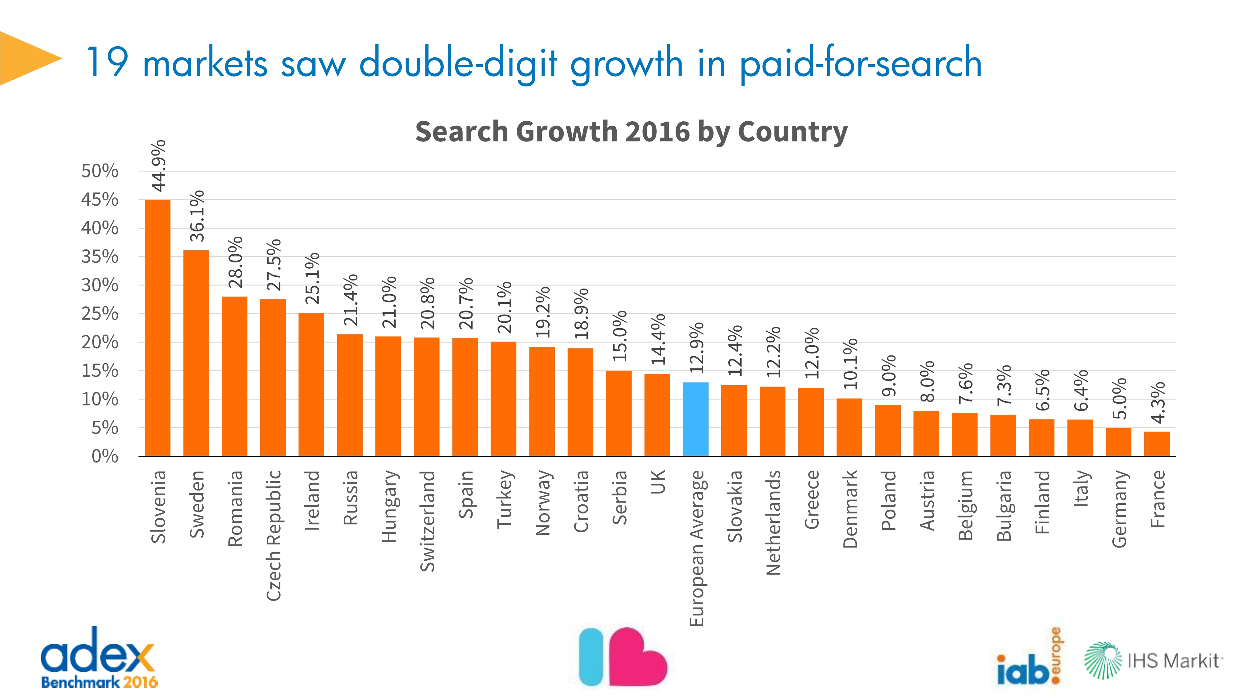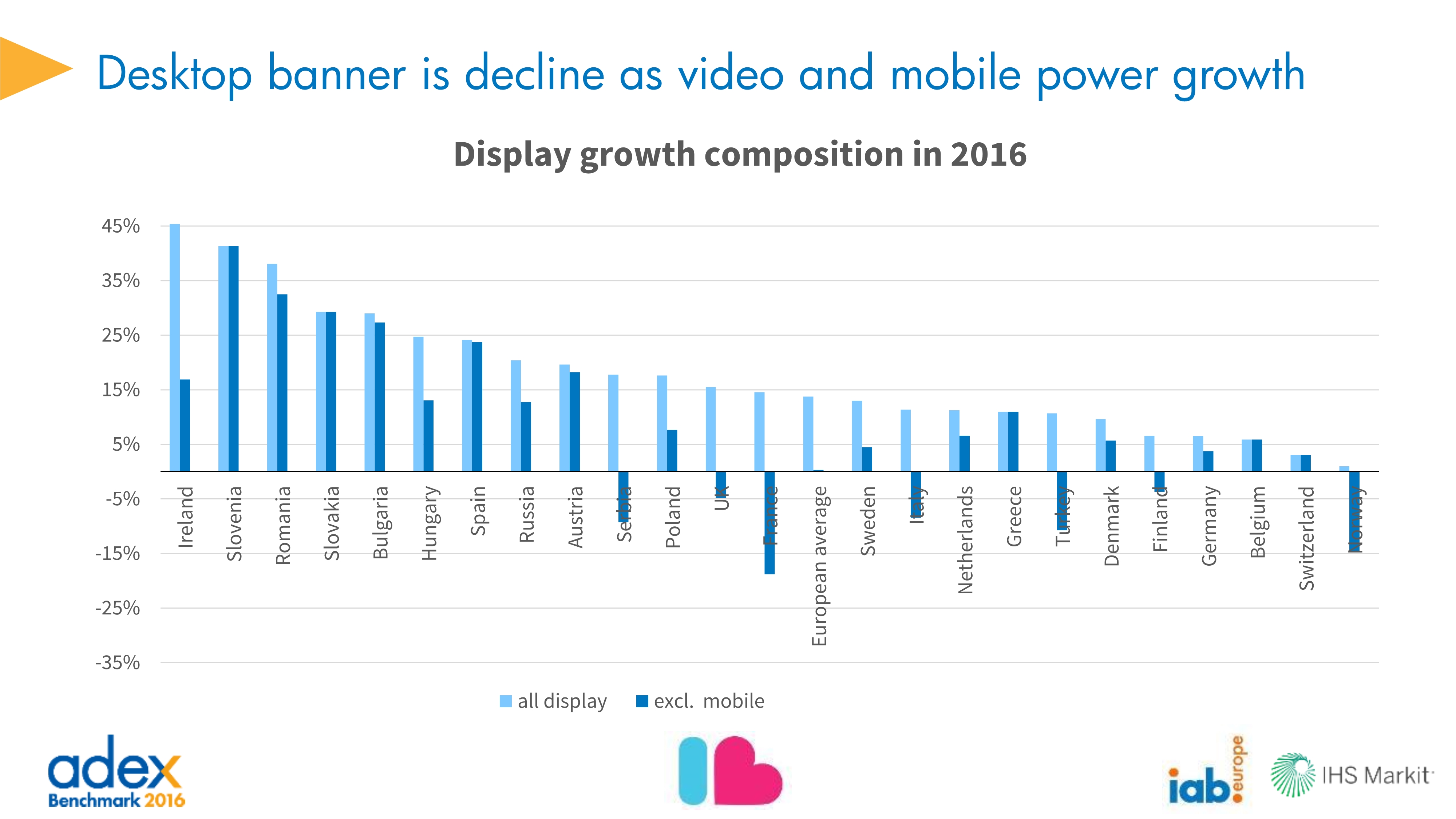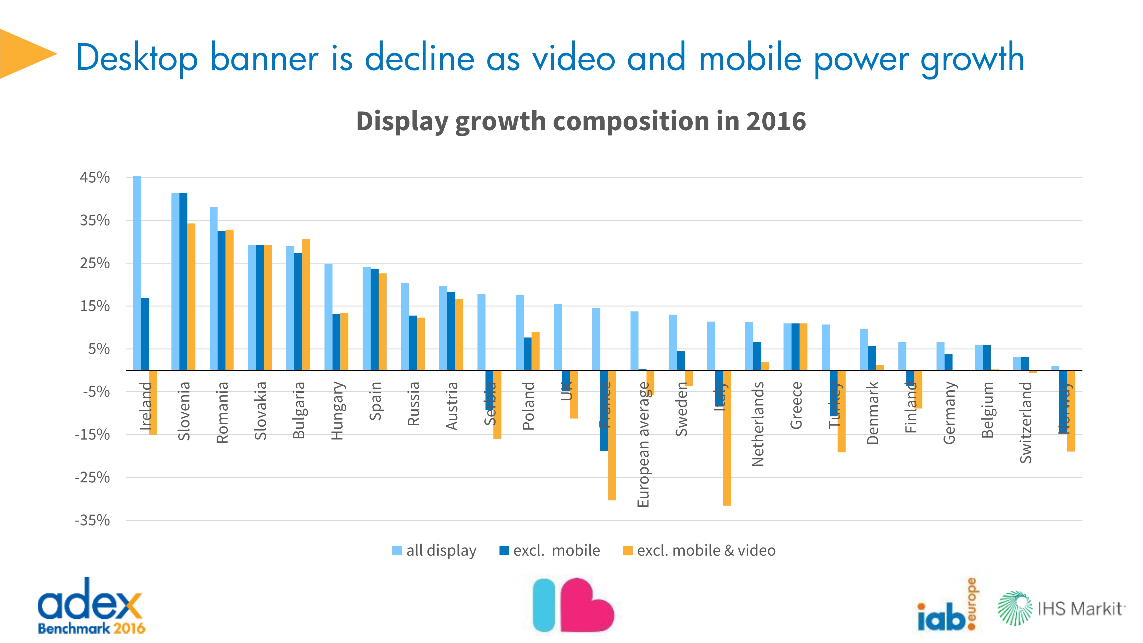 2016年,罗马尼亚、斯洛文尼亚和爱尔兰网络广告支出增长都超过30%。