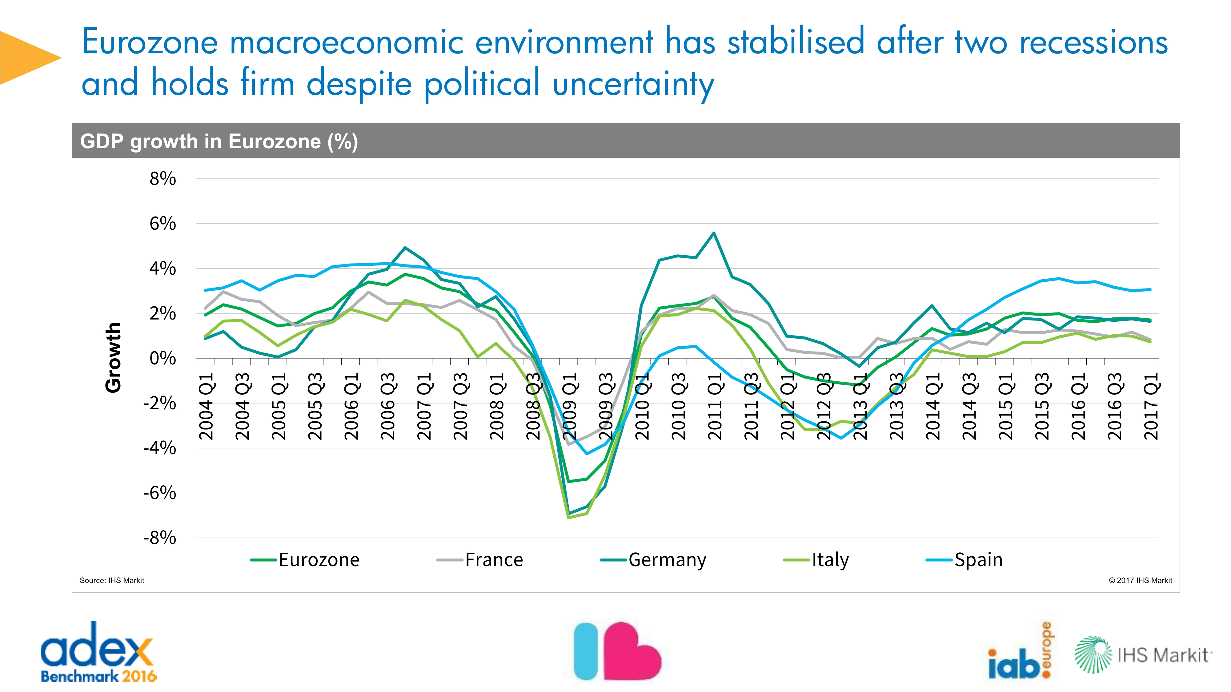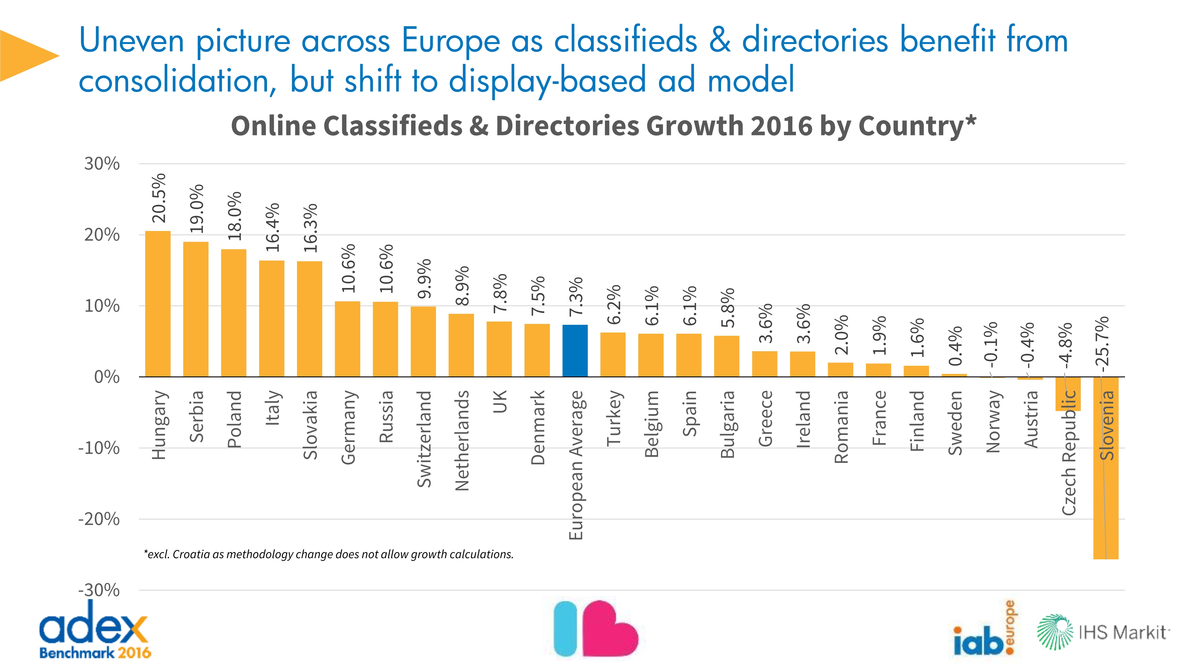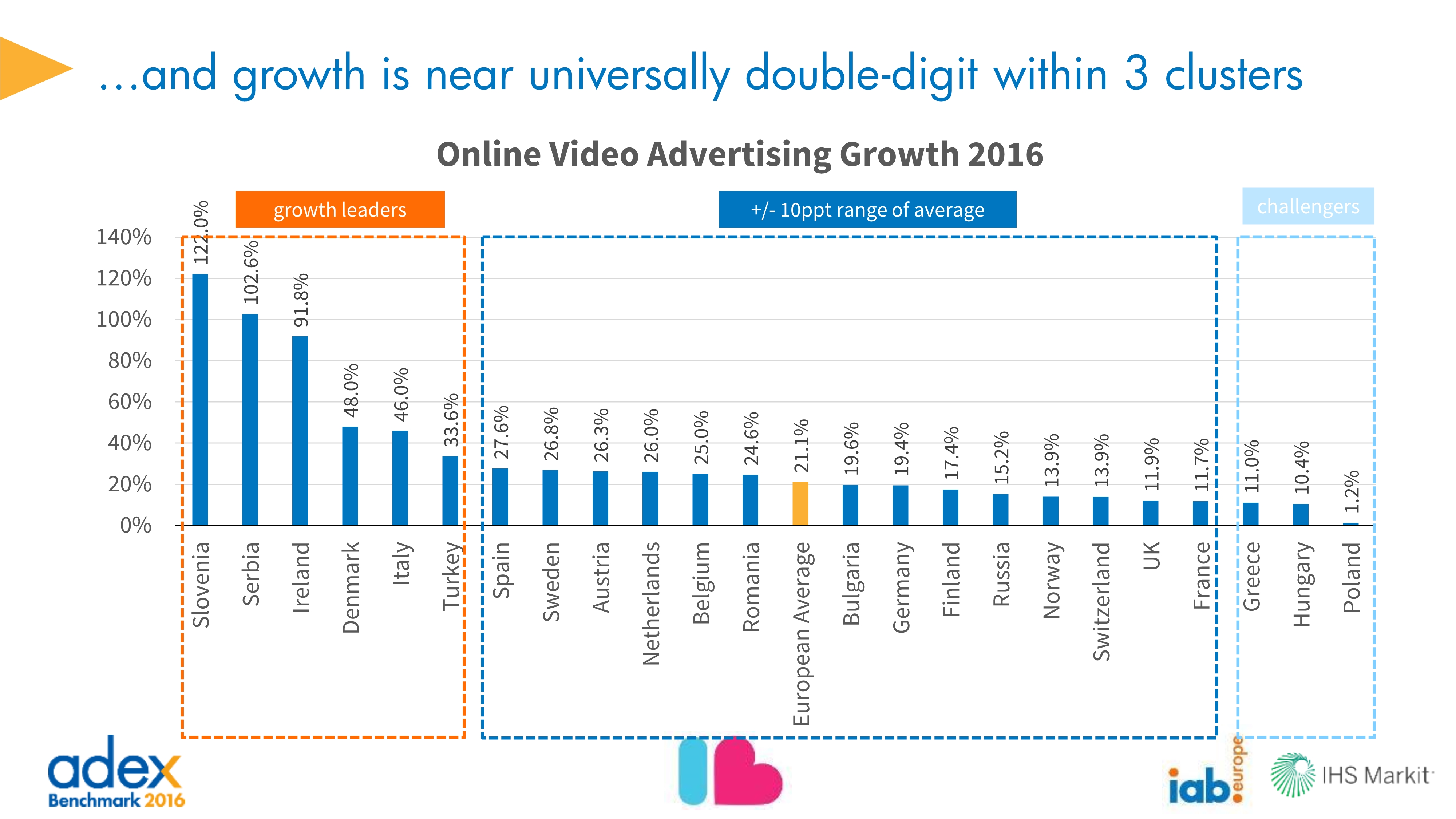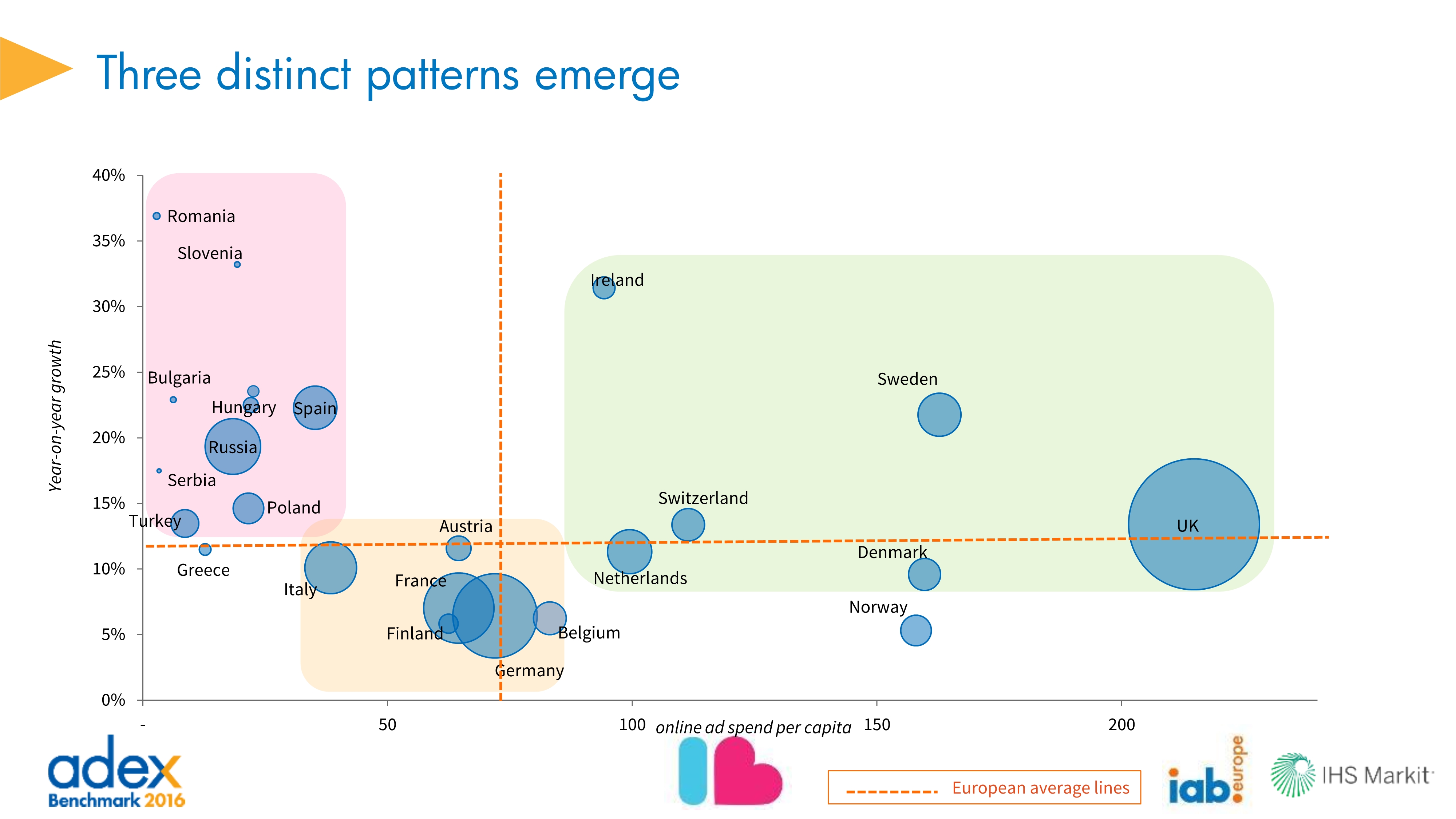 2016年,罗马尼亚、斯洛文尼亚和爱尔兰网络广告支出增长都超过30%。