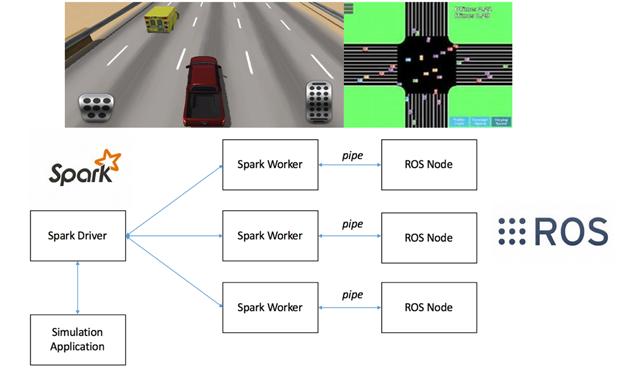 在云平台中,Spark管理着分布式的多个计算节点,在每一个计算节点中,都可以部署一个场景下的ROS回访模拟。在无人驾驶物体识别测试中,单服务器需耗时3小时完成算法测试,如果使用8机Spark机群,时间可以缩短至25分钟。