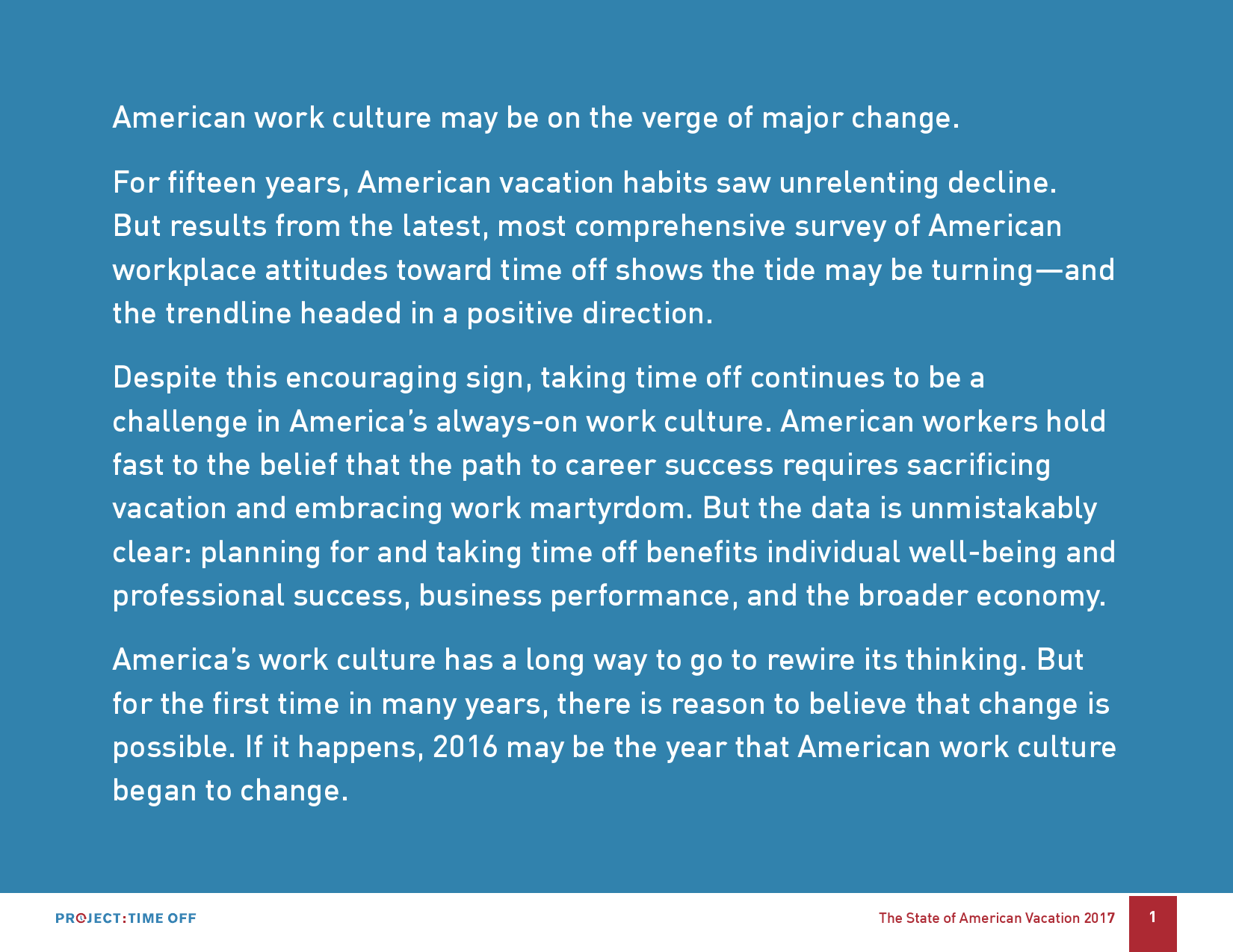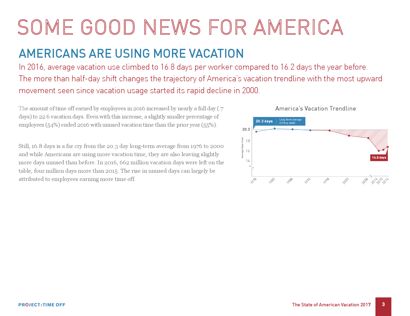 “总的来说美国人开始使用更多假期了,”调研负责人 Katie Denis 说,“现在有一点点好转了,可能会是大转变的开始。”