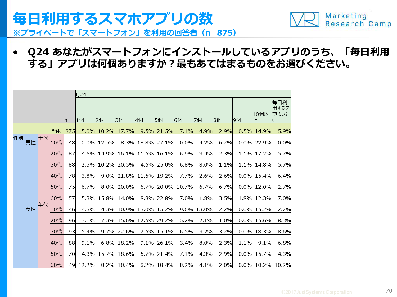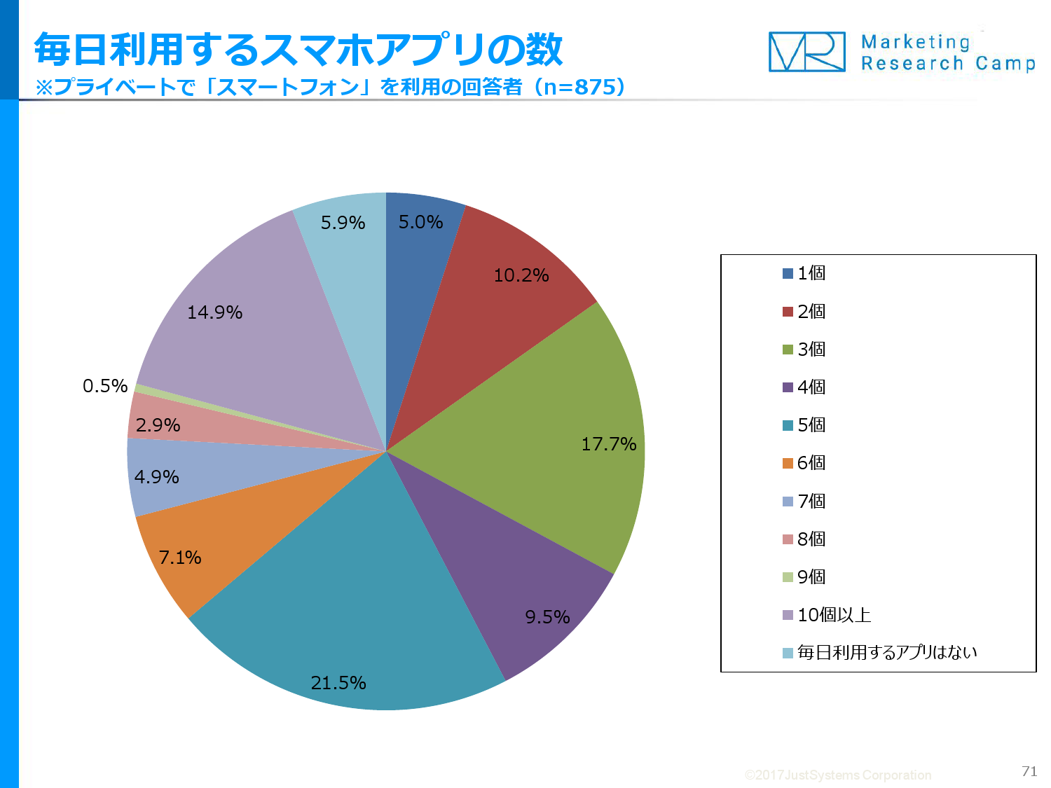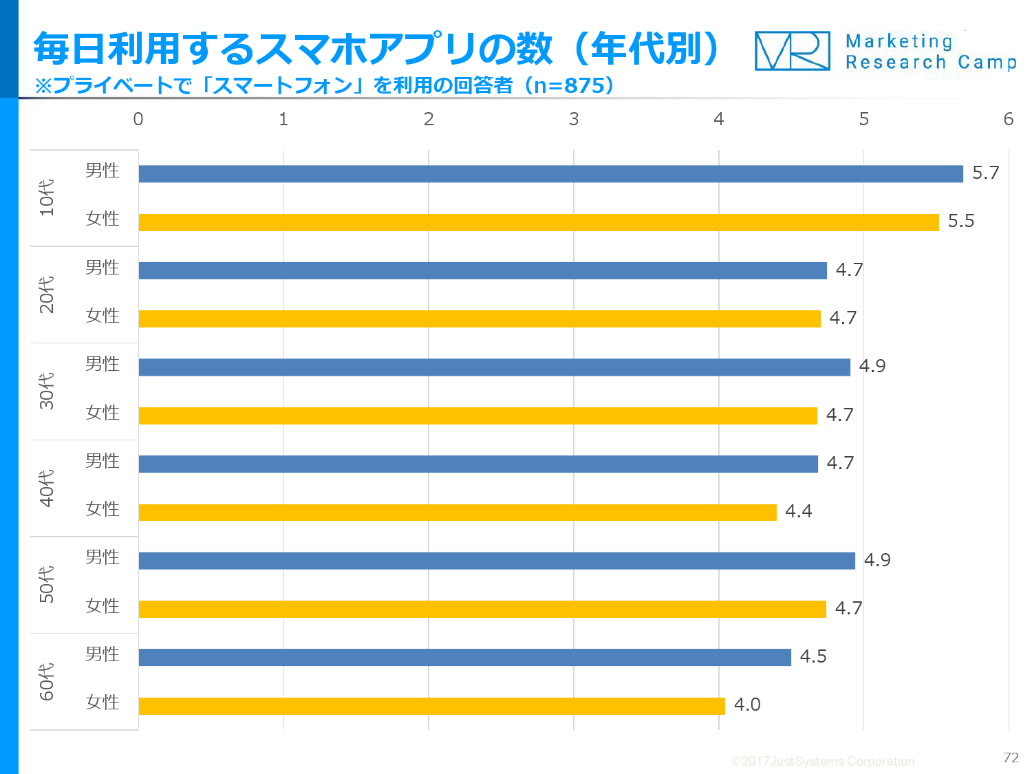 日本数据分析机构Marketing Research Camp发布了2017年5月日本移动设备及社交方式调查报告。数据显示,日本智能机的持有率已经达到了79.5%。每天使用5个以下手机app的用户占到了智能机用户的63.9%,但与之相对的是用户的使用时间相对较长,70%的用户每天使用手机时长超过1个小时。