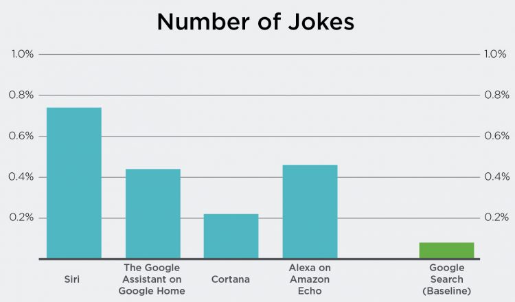 下图显示了各家数字个人助手回答问题的数量。