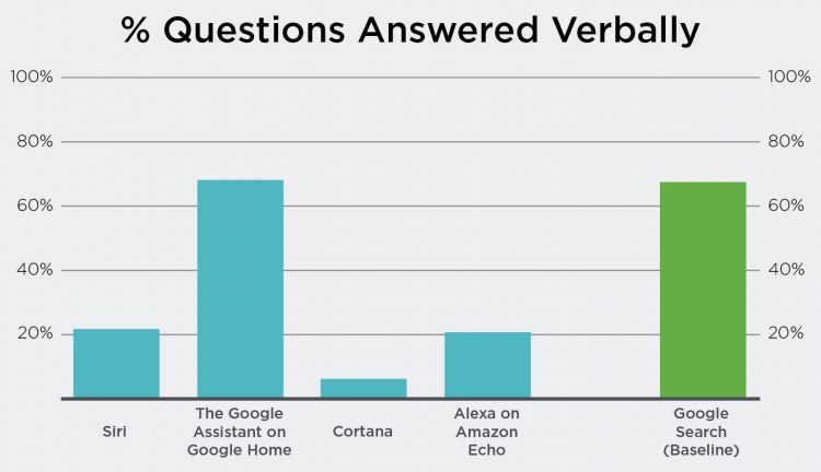 如图所示,Google Home上的谷歌助手口头回复最多,但是,这并不意味着它提供了最多的答案。