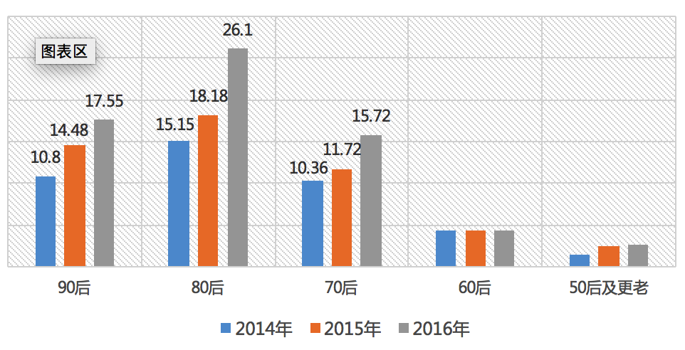 上图:2016年70后、80后和90后对生活形态语句的赞同比例(%)