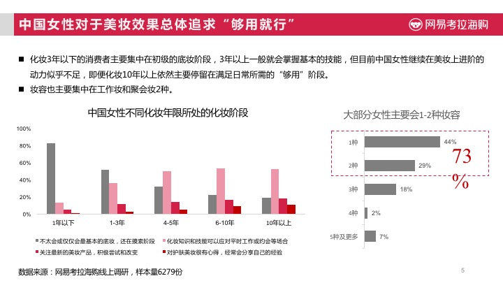 深究其原因,主要在于中国女性消费者目前中国女性继续在美妆上进阶的动力似乎不足,即便化妆10年以上依然主要停留在满足日常所需的“够用”阶段。