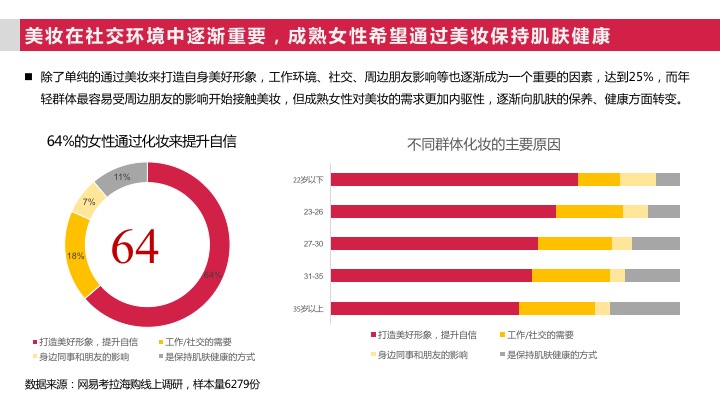 将近72%的女性消费者,其妆容也主要集中在工作妆和聚会妆这2种。