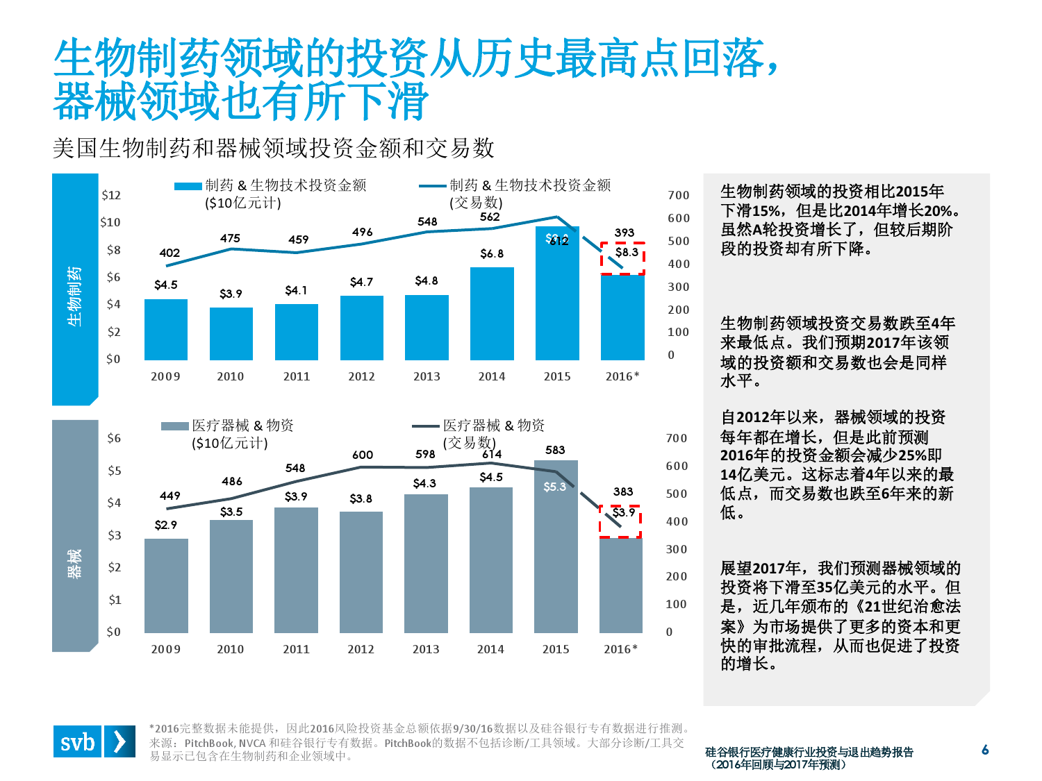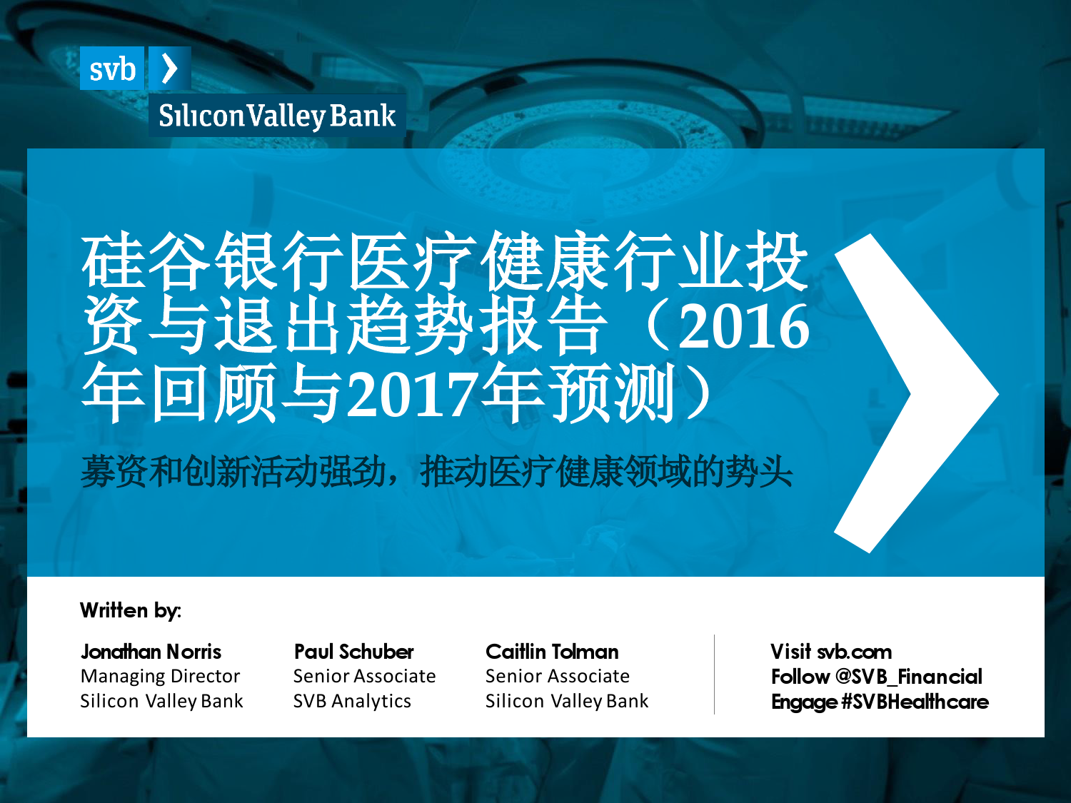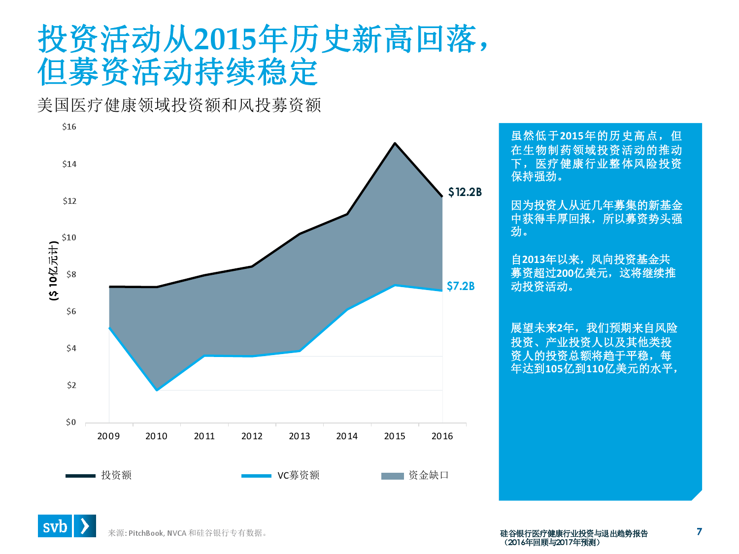 2017年初,硅谷银行发布《医疗健康行业投资与退出趋势报告(2016年回顾与2017年预测)》,继表现卓越的2015年之后,2016年的投资活动有所下降,但募资仍位于过往较高的水平。